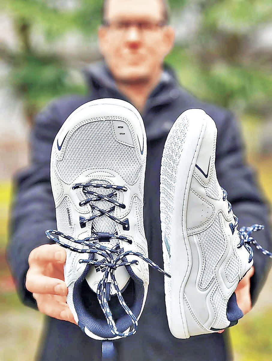 曾經是棍網球港隊球員的Theo,最初因為經常在打籃球後感到膝痛,後來從品牌另一聯合創辦人、物理治療師阿超得知赤足鞋的功用,實際穿過後發現腳患有改善,因此才合力創辦赤足鞋品牌Urbanroot。他指出:「最初穿上赤足鞋會覺得足底或小腿特別累,可以先從每日行走1至2小時開始,慢慢增加穿着時間。Urbanroot的EZ01亦有『易過渡設計』,鞋內有可移除鞋墊作緩衝,適應後可拿走鞋墊。」