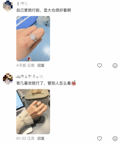不过,小红书等社交平台上也出现了不同声音,不少消费者认为,“买钻戒本来就是买情绪价值,为什么老是要考虑贬值的问题?”“每个人都有各自的选择。”这也反映出市场对钻石价值的认知正在走向多元。