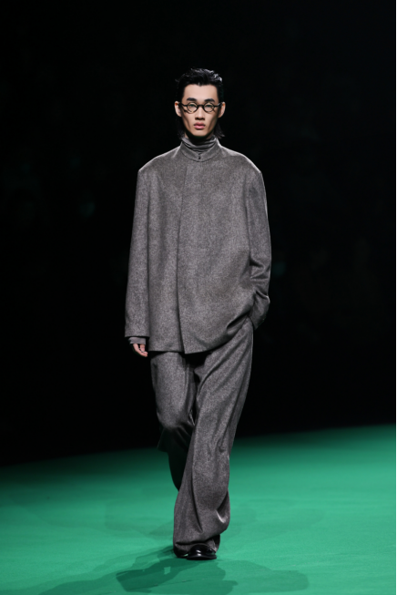 本季发布会以“奇峰岁月Peak/Epoch”为主题,深度探讨服装跨越人类历程、作为时间媒介所镌刻下的美学线条。大秀别出心裁地将二十世纪西方早期设计师与中国文人的形象并置,让同一时间段、不同空间的知识分子着装风格在形式结构与审美意韵上形成强烈的映照与对话。为了致敬这些人类文化的构建者,设计团队打破了服装固有的款式结构,巧妙强化了内外、上下层次的穿插关系。通过深度融合绗缝、毛边等传统工艺,时装被赋予了细腻的手工温度与质感,成功将二十世纪初充满现代性的典型特征转化为可感知的时代气质与穿着情绪。