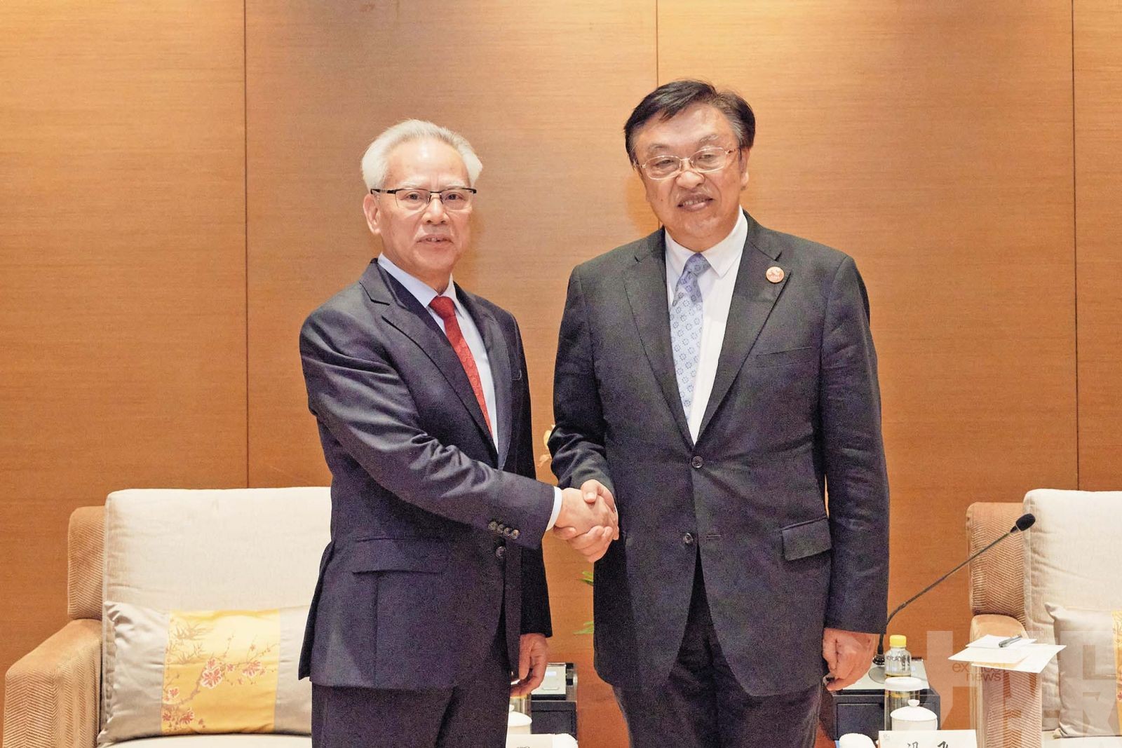 行政長官岑浩輝與海南省委書記、省人大常委會主任馮飛親切握手。(新聞局圖片)