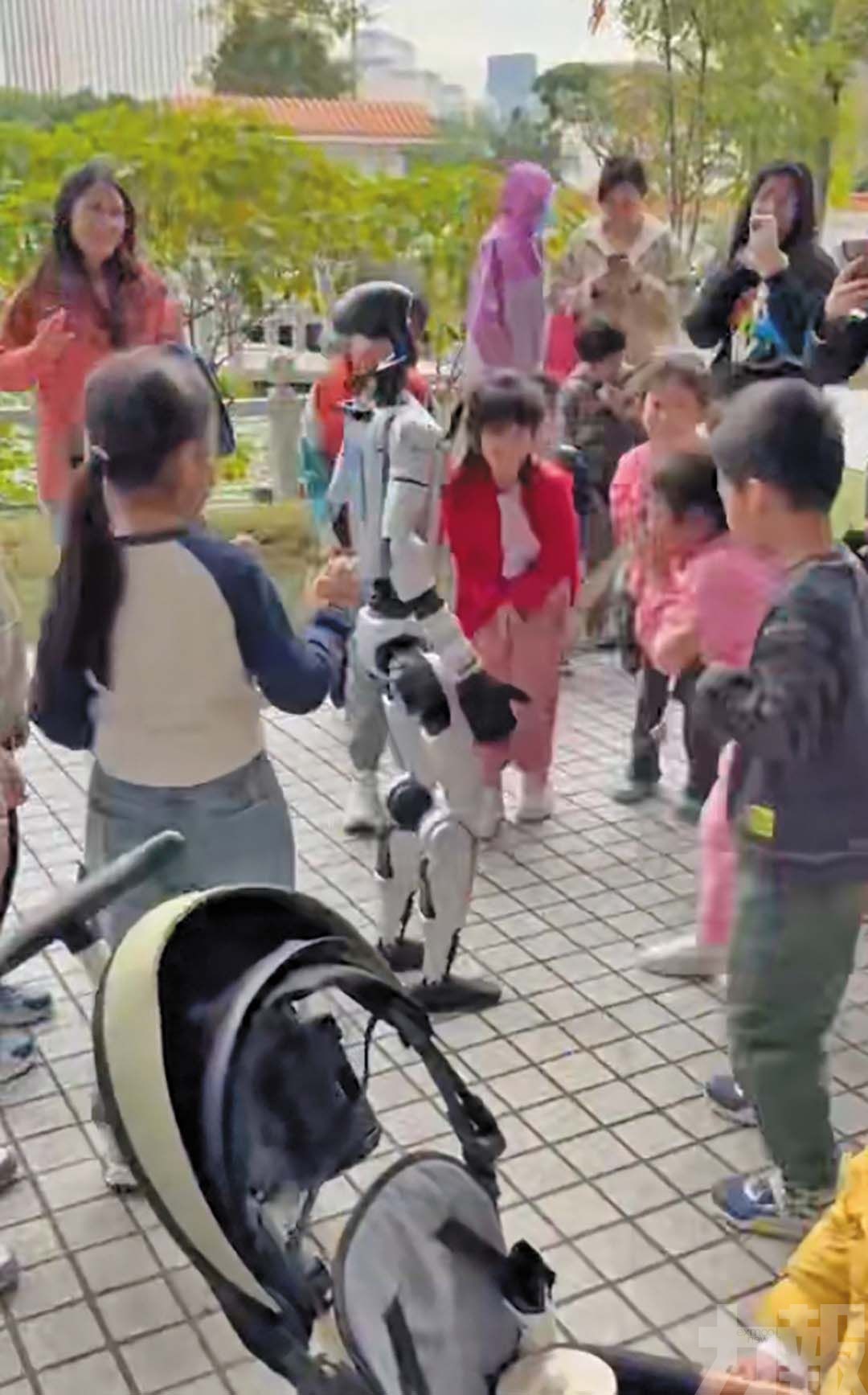 民眾圍觀人形機器人,並表現出濃厚興趣。