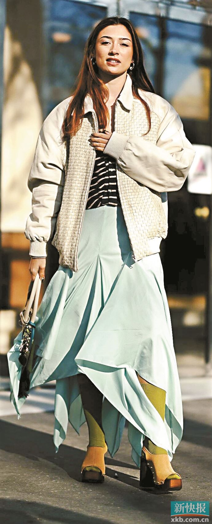飘逸长裙×复古夹克=温柔浪漫