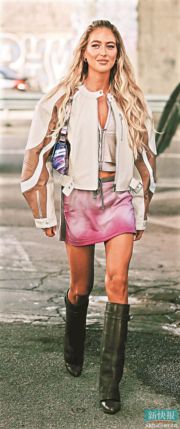 包臀短裙×利落短款夹克=甜酷吸睛
