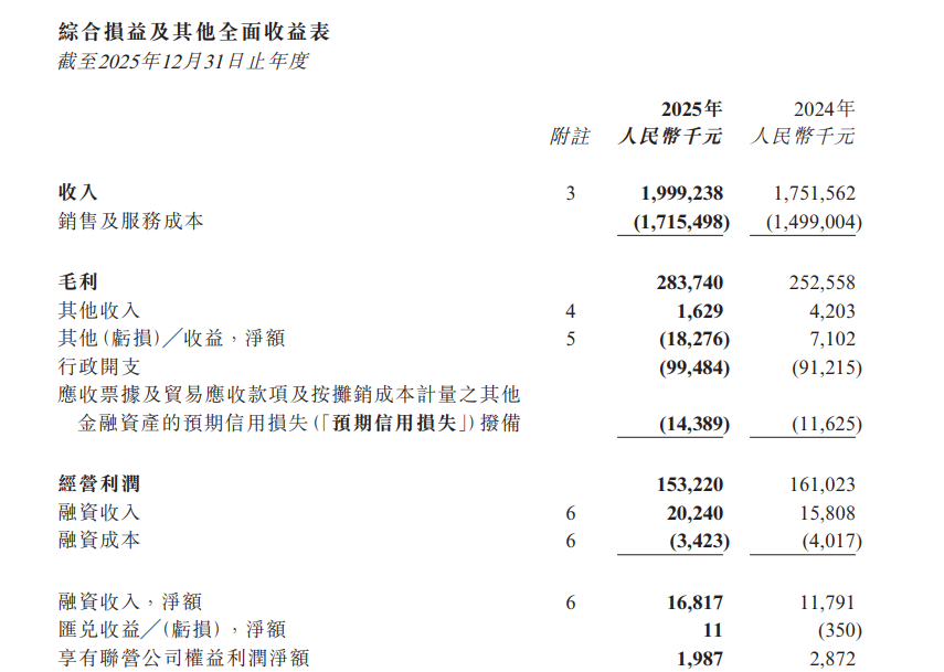 2025年,金融街物业收入约为19.99亿元,较2024年增长14.14%;毛利约为2.84亿元,同比增长12.35%;整体毛利率约为14.19%,2024年同期则为14.42%。