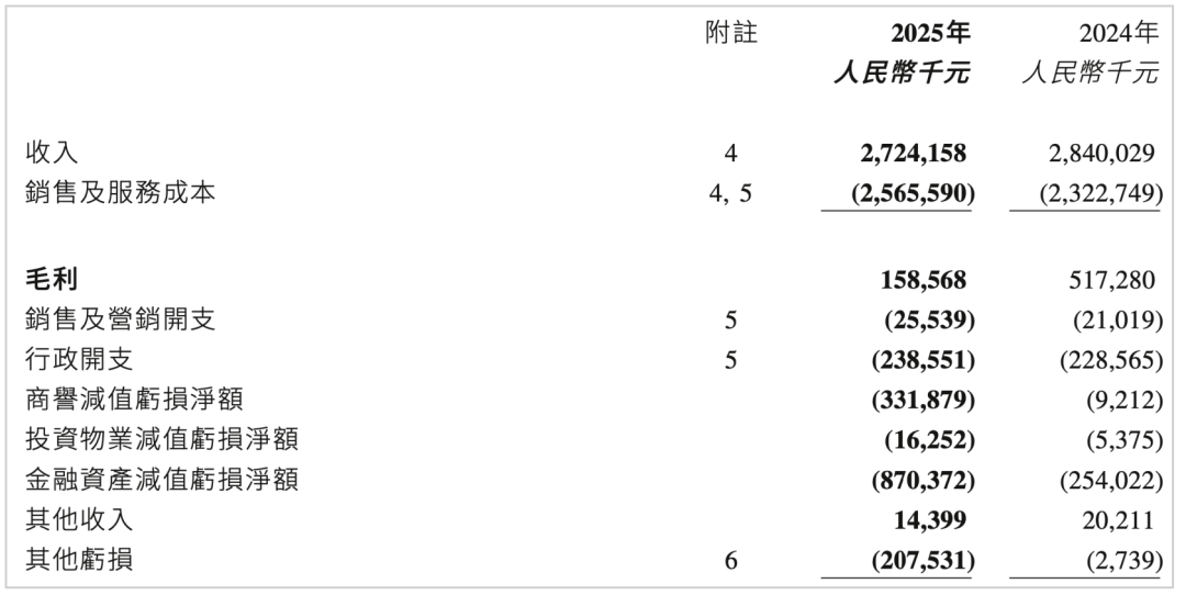 2025年,远洋服务录得毛利约1.59亿元,较2024年同期的5.17亿元下降约69%;整体毛利率则由2024年的18%下降至6%。