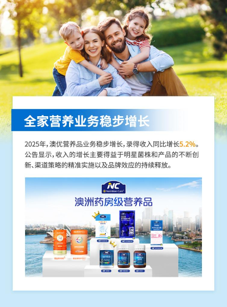作为持续培育的“第二增长曲线”业务,2025年澳优营养品业务稳步增长,录得收入同比增长5.2%。公告显示,收入的增长主要得益于明星菌株和产品的不断创新、渠道策略的精准实施以及品牌效应的持续释放。