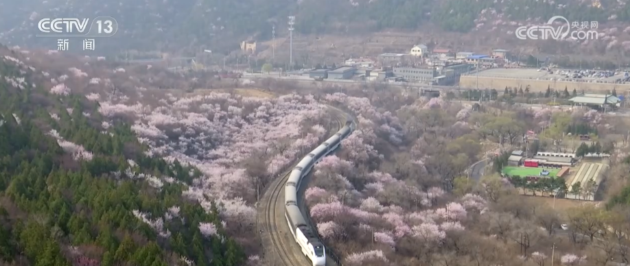 央视网消息:春日暖阳,百花争艳,人们纷纷来到户外,感受专属春天的浪漫与美好。随着山桃、杏花漫山绽放,位于北京市昌平区的居庸关长城景区迎来春季赏花客流高峰。花海栈道风光好 长城列车入画来