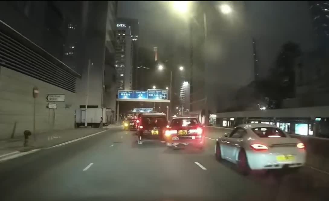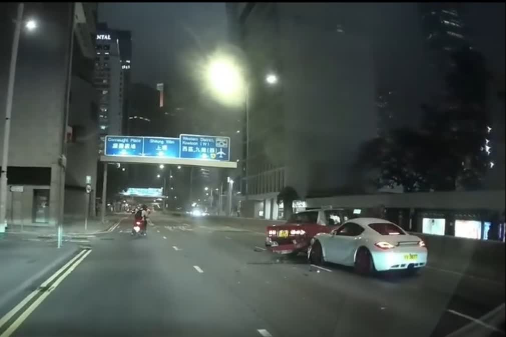 有網上車Cam片段顯示,事發時一輛「小露寶」的士沿中線行駛,疑因前方有車擬左轉入會所街,「小露寶」的士因此收慢停下。此時,另一輛的士沿快線駛至,並打燈擬切入中線,但相信司機見前方「小露寶」的士減速,在「打左燈切右線」下又返回快線,而尾隨保時捷收掣不及猛撼該的士車尾,並把其推前約10米始告停下。