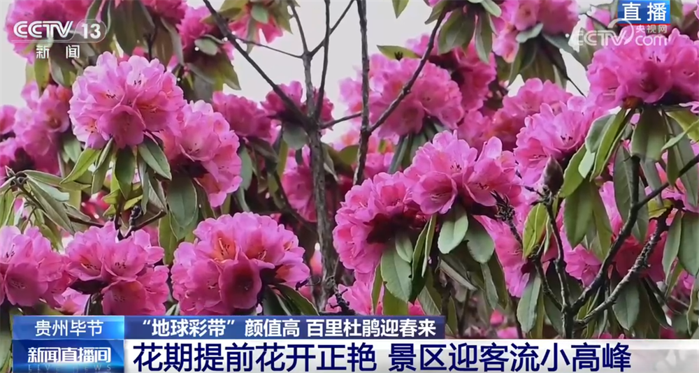 央视网消息:目前,在被誉为“地球彩带”的贵州毕节百里杜鹃景区,绵延百里的杜鹃花逐渐进入盛花期,吸引了不少游客前往观赏体验。