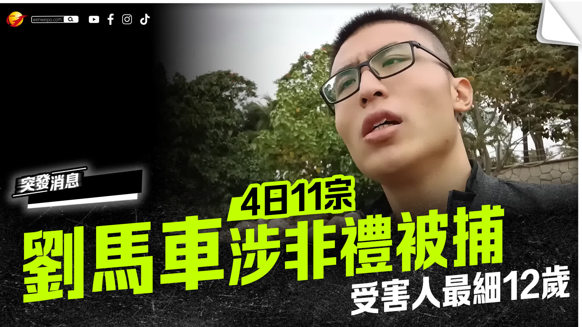 外號「劉馬車」的網絡紅人劉駿軒曾因風化案罪成入獄,他再涉非禮被捕。劉馬車涉嫌於3月29日至4月1日,在九龍及新界多處非禮,11名受害人由12歲至26歲不等,當中有人認出是劉馬車報警。