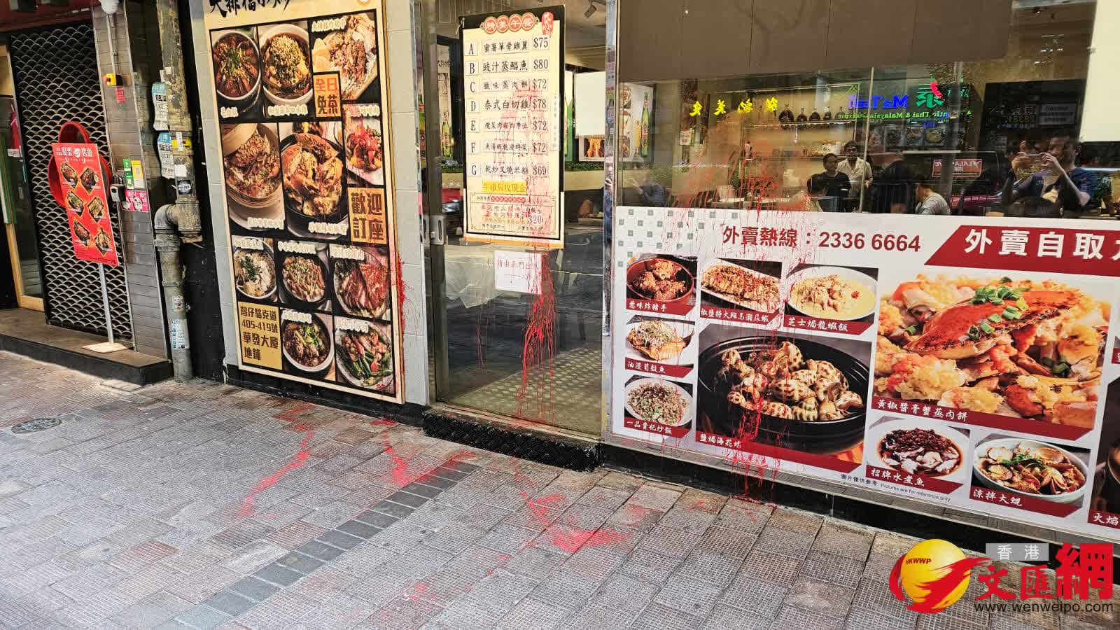 香港文匯報訊(記者 蕭景源)灣仔發生連環淋油刑毀案。警方今日(2日)早上先後接獲區內4間食肆,包括火鍋店、麵館、小炒餐廳和飯店報案,指分別遭人向大門及櫥窗潑淋紅色油漆。警方經初步調查,相信4間食肆俱屬同一集團,已列作刑事毀壞案調查案件動機及追緝歹徒下落。