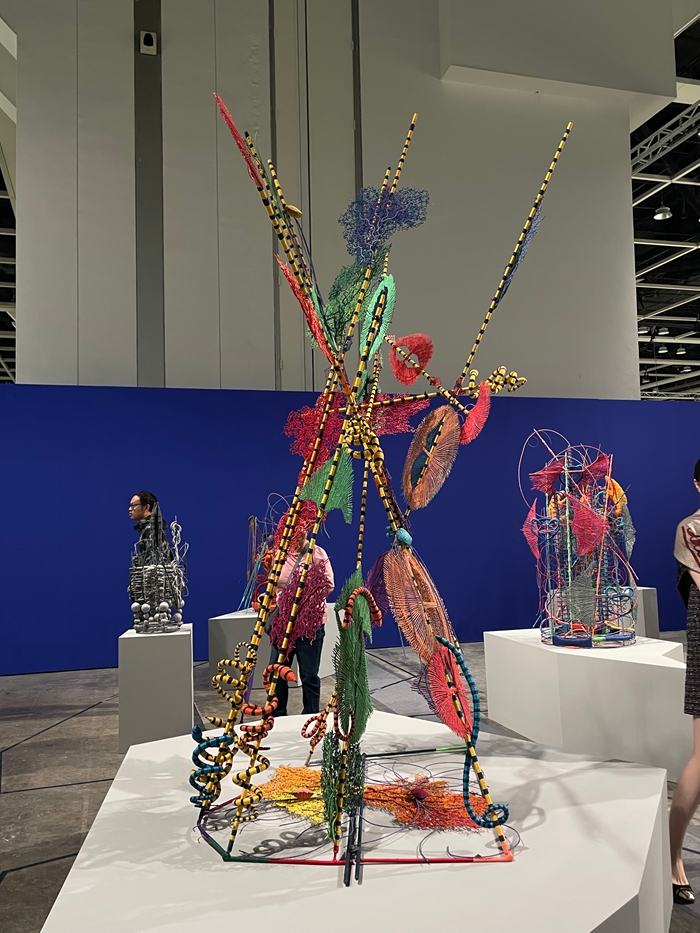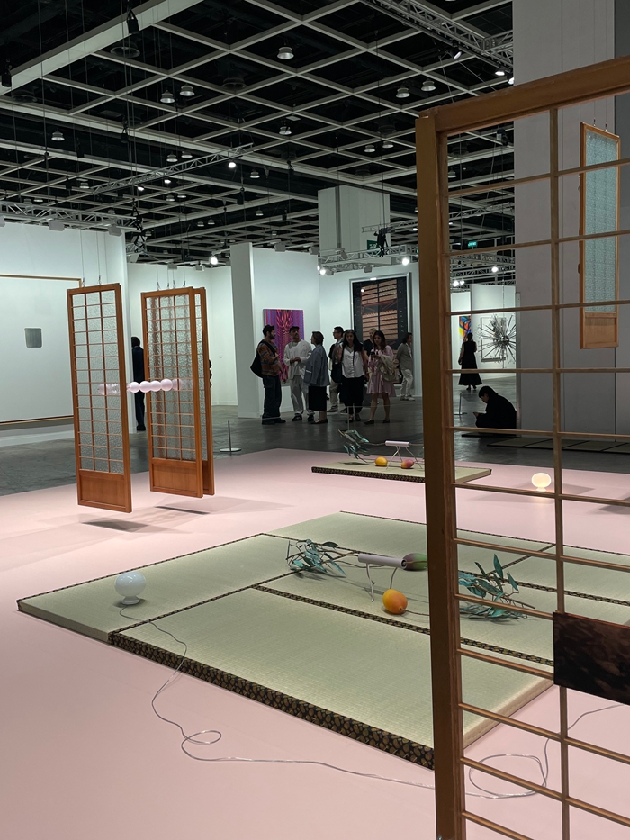 尤为值得注意的是“Insights”单元的质变。这个曾被视为着重地域性艺术史语境的展区,如今已演变为讨论亚洲文化的平台,亚洲现代主义、殖民历史、城市发展、文化身份等议题在此展开。京都Cohju江寿画廊带来了艺术家Shinya Azuma的小型个展;纽约Sapar Contemporary画廊呈现了泰国艺术家Uuriintuya Dagvasambuu和哈萨克斯坦艺术家Aya Shalkar的双个展。而在新增的偏策展项目“Echoes”单元中,同样展现了亚洲艺术家的多样创作:首尔Whistle画廊呈现了Hyun Nahm等三位韩国艺术家的架上与雕塑作品;Klemm’s and Capsule带来了香港艺术家Leelee Chan的墙面装置;Max Estrella展出了越南裔艺术家Tiffany Chung的刺绣地图。