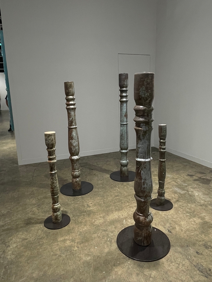 本届参展画廊的构成同样印证了这一转向趋势:超过100家参展画廊在亚洲拥有实体空间,40余家中国画廊参展,其中20余家进入主单元“Galleries”,与国际蓝筹同台竞技。这种结构性转变在多个单元中层层展开:“Kabinett”单元的35个项目中,23个聚焦亚太地区各时期的当代艺术家,Tomio Koyama画廊呈现了日本艺术家长井朋子一系列串联日常碎片与梦中场景的小型绘画及雕塑;维伍德画廊展出了中国香港艺术家林岚的雕塑《防风林》;麦勒画廊呈现了雷娜·裴的绢本绘画系列及隐喻城市更新的装置作品,亚洲艺术家的创作越来越多地被纳入展会的舞台中心。