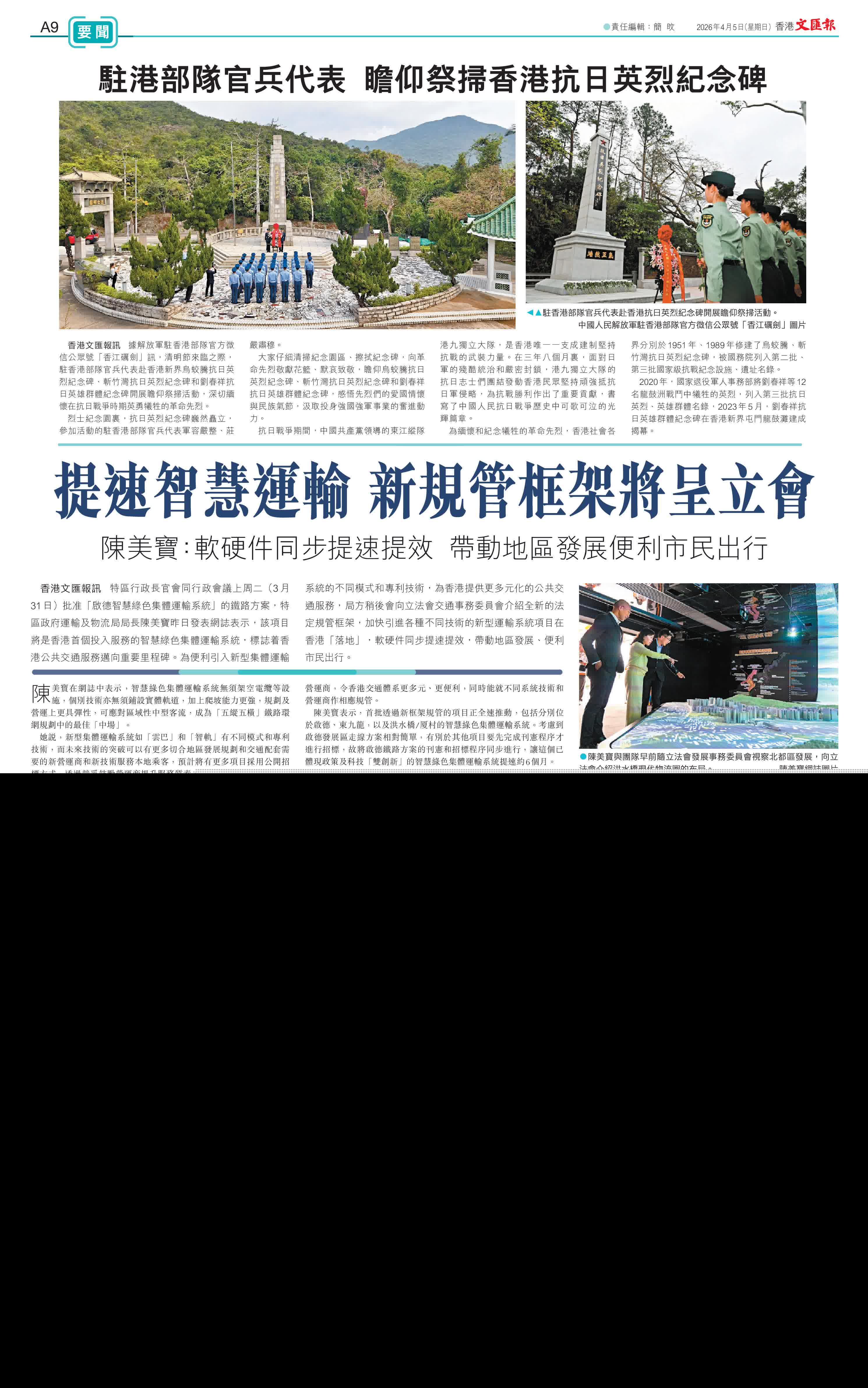 香港文匯報訊 據解放軍駐香港部隊官方微信公眾號「香江礪劍」訊,清明節來臨之際,駐香港部隊官兵代表赴香港新界烏蛟騰抗日英烈紀念碑、斬竹灣抗日英烈紀念碑和劉春祥抗日英雄群體紀念碑開展瞻仰祭掃活動,深切緬懷在抗日戰爭時期英勇犧牲的革命先烈。