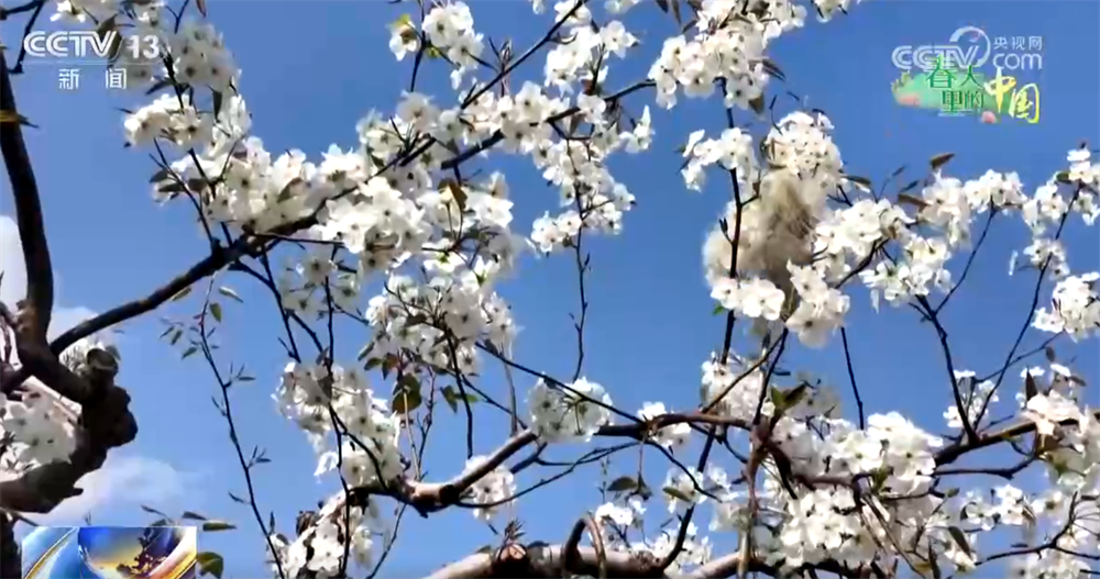 山西运城:梨花竞相绽放 田间人工授粉忙