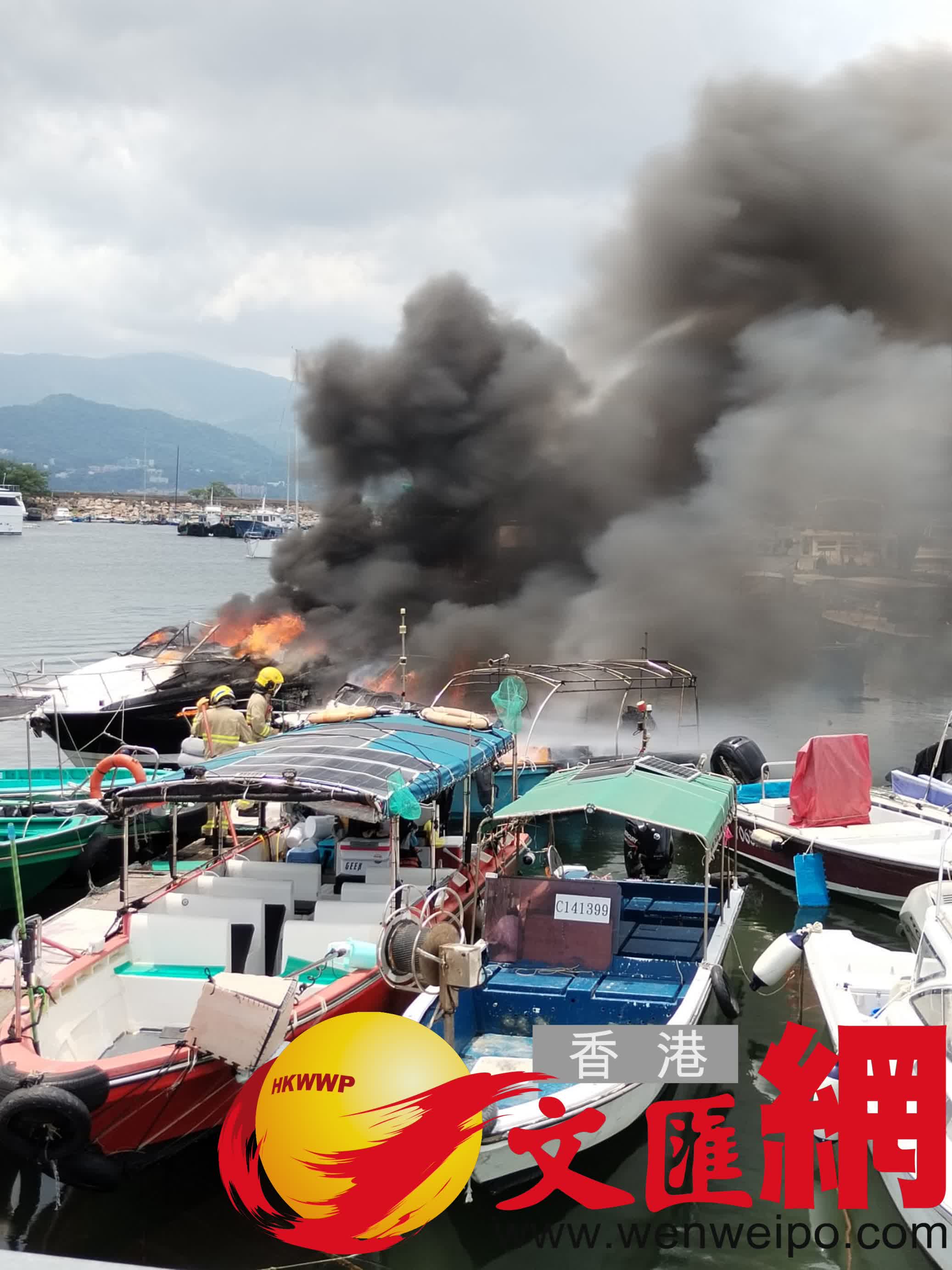 其後消防員奉召到場,迅將4船隻分開及動用一喉及一隊煙帽隊於下午約1時31分將火救熄。香港文匯報記者現場所見,其中兩隻被拖到碼頭岸邊的船隻已被嚴重焚毀入水擱淺傾側,另有兩隻船被拖到碼頭的另一邊,當中白色船身的船隻亦燒毀嚴重,另一隻藍色船身的船隻頂篷已被燒毀。消防現在調查起火原因,初步無人受傷。