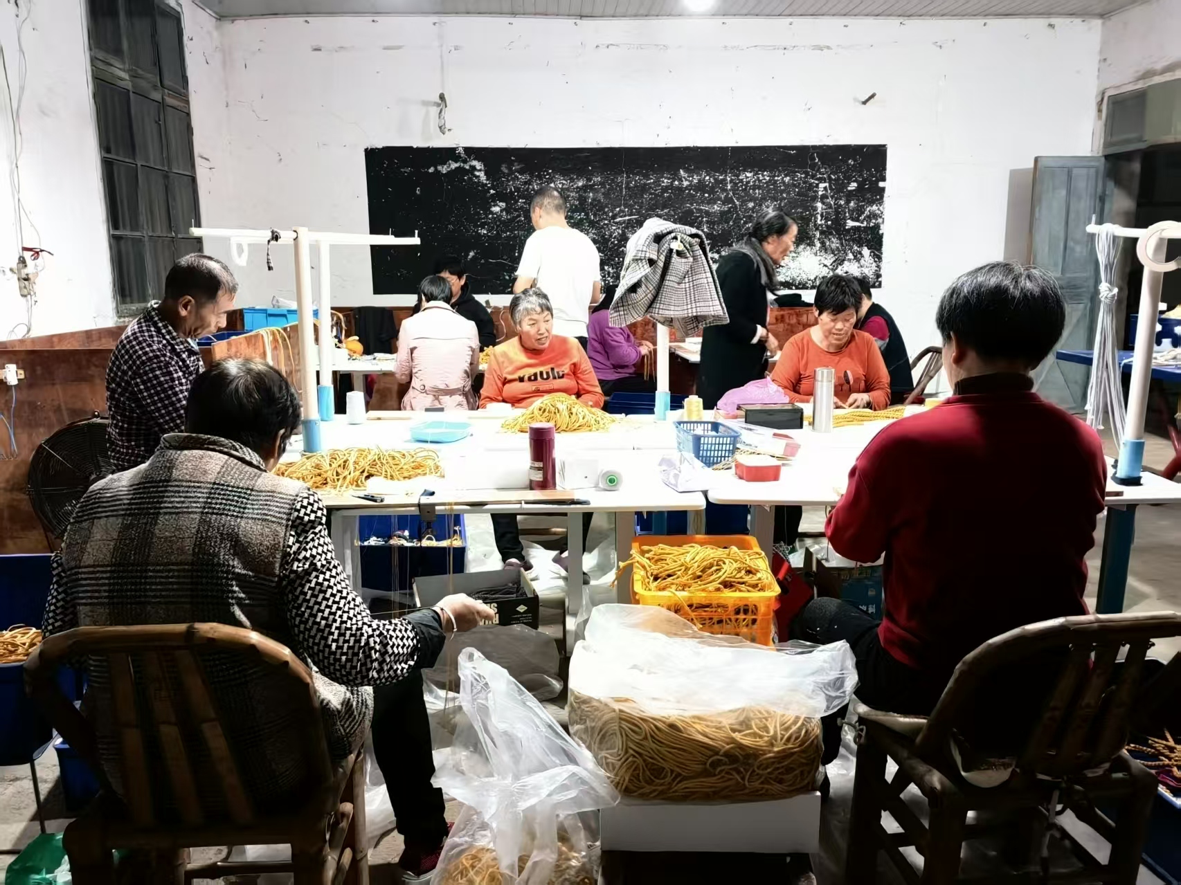 就是这家从风雨中走来的企业,没有选择一味扩建大厂,而是把生产线“拆开”了。他们将部分技术门槛低的基础加工工序下沉到村里,一个村设一个点,由专人分发、回收,厂里只负责质检、衔接和打包。“最忙的时候,这样的集散点遍布几十个乡村,上千名农村妇女在家门口‘接单’。”企业负责人童波英介绍,一位上了年纪的农村阿婆坐在自家院里,一天能挣五六十块到百来块钱,既不耽误带孙辈,也不用向家里“伸手要钱”。
