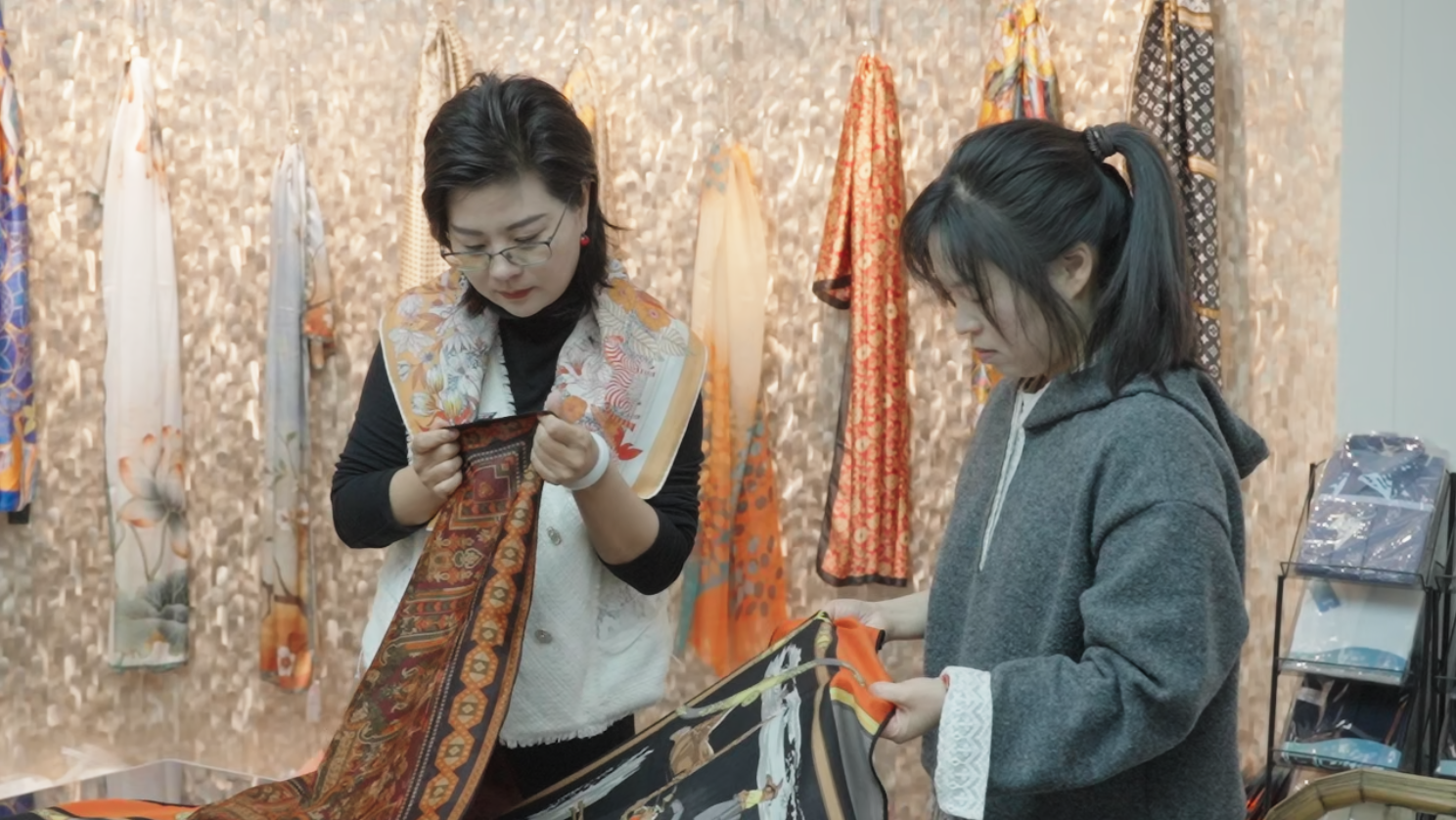 在嵊州市,一家名为杜邦服饰的企业的做法,颇具代表性。这家成立于2003年的企业,主营领带、羊绒衫、丝巾,二十余年间几经起落。夫妻俩从15万元借款、租小厂房起步,中途因国际市场风波损失惨重,最艰难时连年夜饭都成问题。