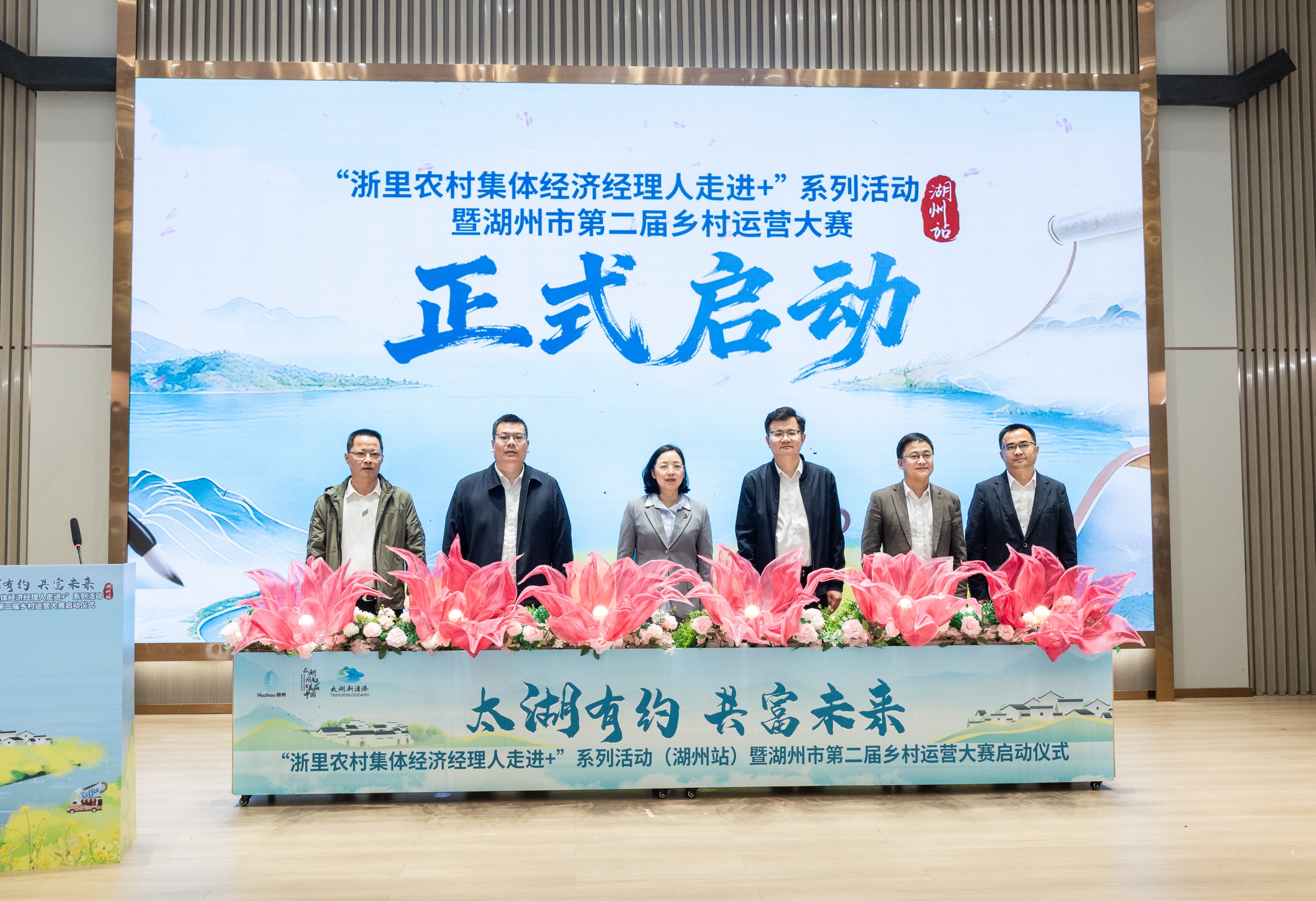 上午10时10分,仪式准时开始。吴兴区人民政府副区长陆安华首先登台,他开门见山:“吴兴始终把乡村运营作为推动乡村振兴、促进共同富裕的关键抓手,以‘滨湖六村’组团联建为突破口,让人才进得来、资源活起来、村民富起来。”