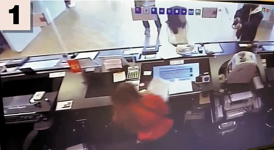 疑犯其後從衣袋內取出一把鐵錘猛力擊碎櫃位的透明膠板,因一度無職員肯就範,疑犯在櫃位外一度踱步及不停揮舞鐵錘指嚇職員,其後一名男職員走近櫃位似安撫疑犯不要輕舉妄動,然後從櫃桶內拿出一疊鈔票放入疑犯拋入的膠袋內遞給疑犯。疑犯最後奪門逃走,整個過程不到兩分鐘。47歲銀行女職員其後報警。