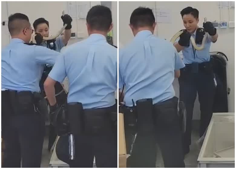 有片|3警圍堵與蛇混戰 女警施擒拿手捉1米蛇