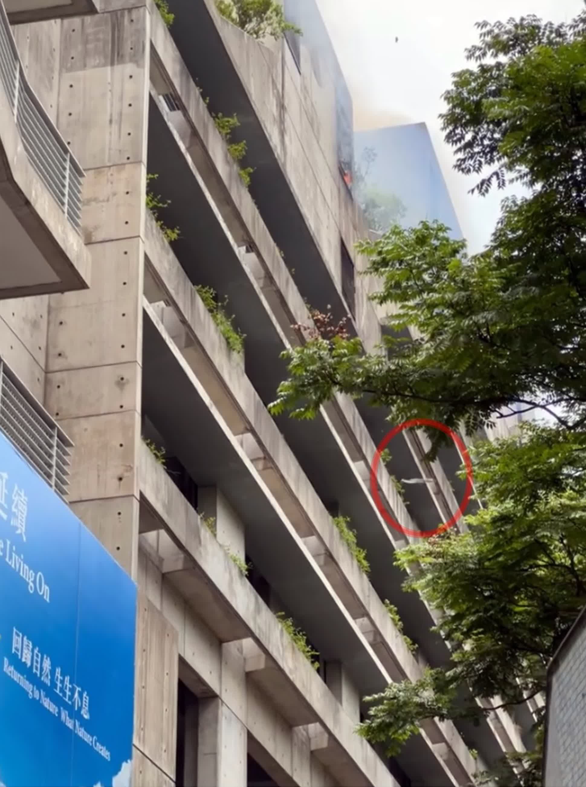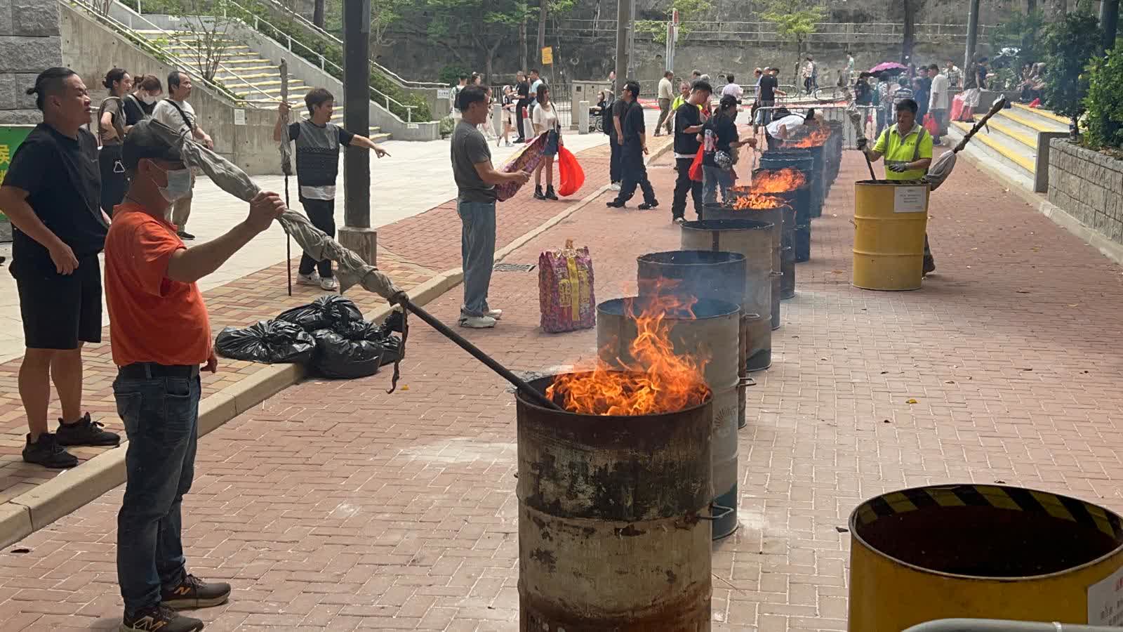 據網上片段所見,現場化寶爐通風口位置不斷冒出大量濃煙。有網民留言指,事發時正在現場拜祭,「突然聽到有人大嗌,抬頭一望見到樓上化寶爐燒到爛左有跌落嚟」。又稱有兩人被掉下來的火舌灼傷要送院,「我親戚好彩有戴帽當一擋,頂帽都穿左(咗)兩個窿!」