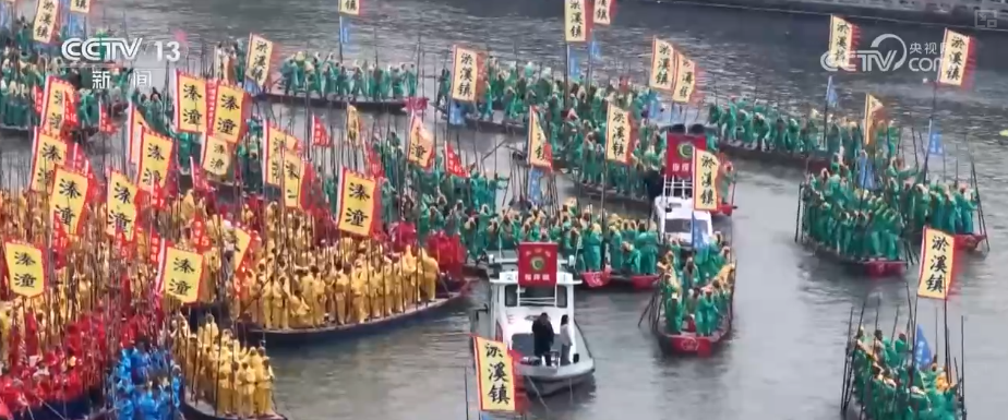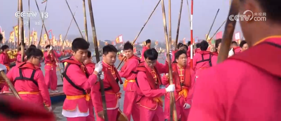 央视网消息:每年春天,国家级非遗——溱潼会船在江苏泰州姜堰区举行。500多只各色船只浩浩荡荡,龙舟、篙船、划子船比速度、比技巧、比气势,水上贡船、花船表演和岸边民俗展示交相辉映。当地人说:会船越热闹,日子越红火。这项传承了800年的水乡盛事2026年有了新变化,洋小伙来了,各地大学生来了,数万游客也来了。清晨的溱湖,锣鼓震天。穿着水乡传统服饰的西班牙小伙李桑饶成为湖面焦点。他和队友们齐声呐喊、同步发力,撑着篙船奋力冲向终点。虽然最终与领奖台无缘,但满头大汗的他说一点也不遗憾。