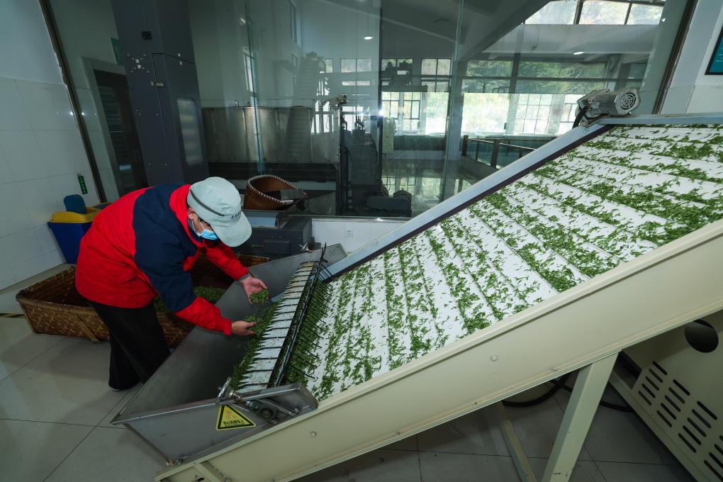 3月10日,在浙江省武义县更香有机茶业开发有限公司的生产车间内,自动化流水线正在加工首批春茶。新华社记者徐昱 摄