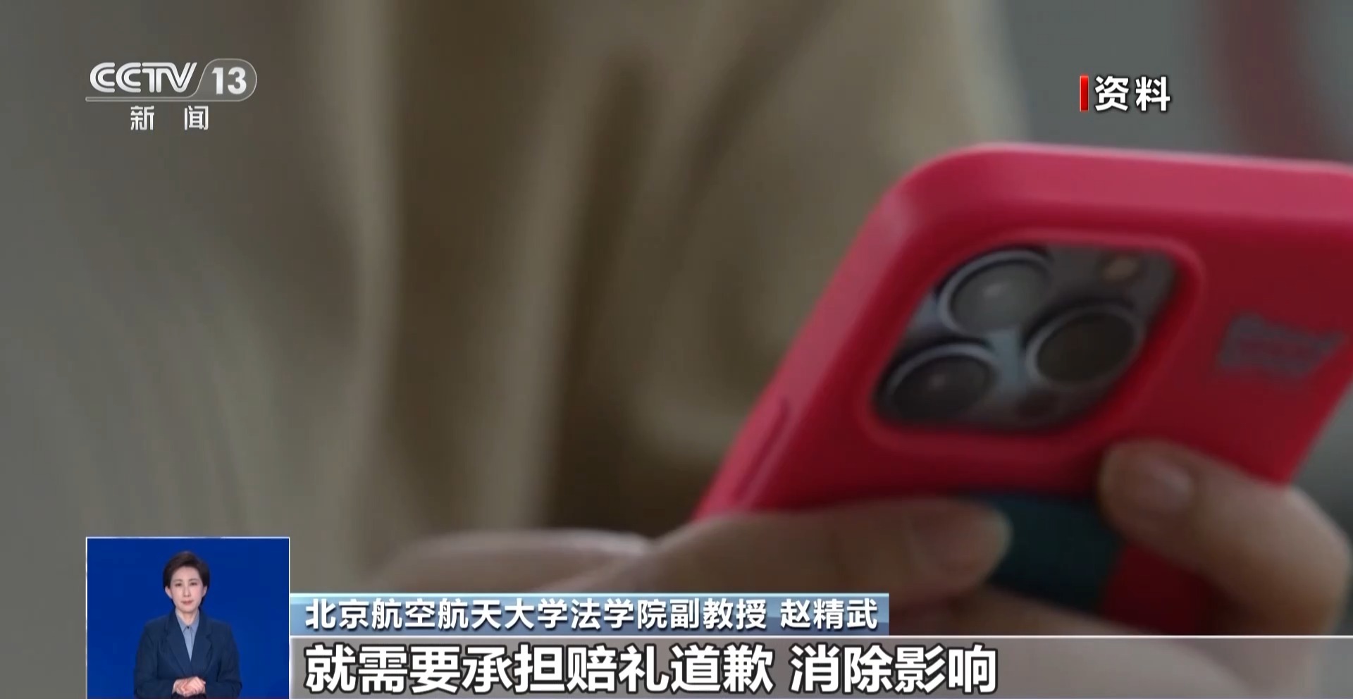 北京航空航天大学法学院副教授 赵精武:这类行为首先侵害他人名誉权、隐私权等人格权益,违反国家民法典、个人信息保护法的法律要求,需要承担赔礼道歉、消除影响、赔偿损失等民事责任。