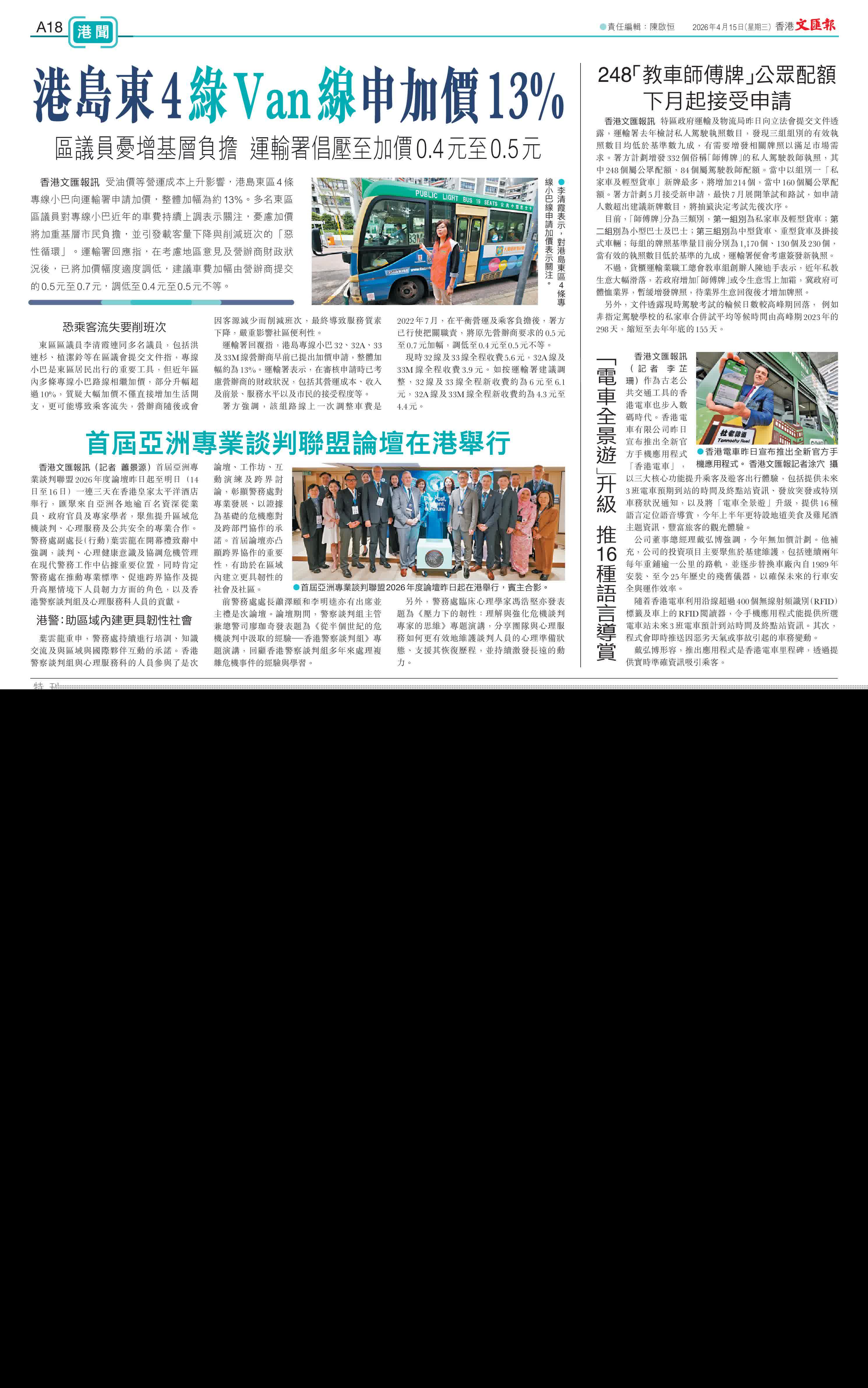 東區區議員李清霞連同多名議員,包括洪連杉、植潔鈴等在區議會提交文件指,專線小巴是東區居民出行的重要工具,但近年區內多條專線小巴路線相繼加價,部分升幅超過10%,質疑大幅加價不僅直接增加生活開支,更可能導致乘客流失,營辦商隨後或會因客源減少而削減班次,最終導致服務質素下降,嚴重影響社區便利性。
