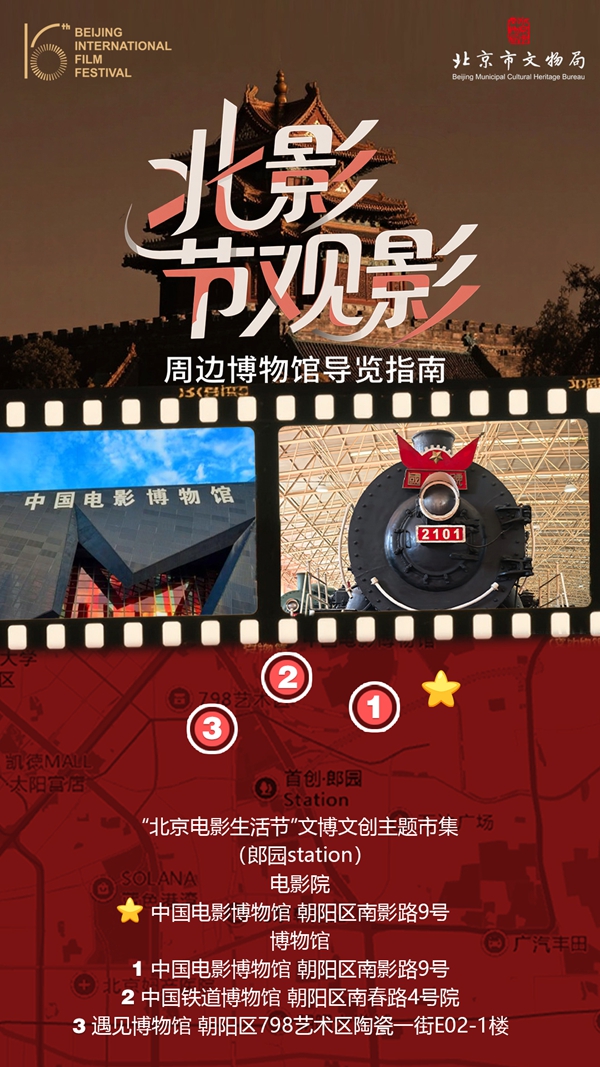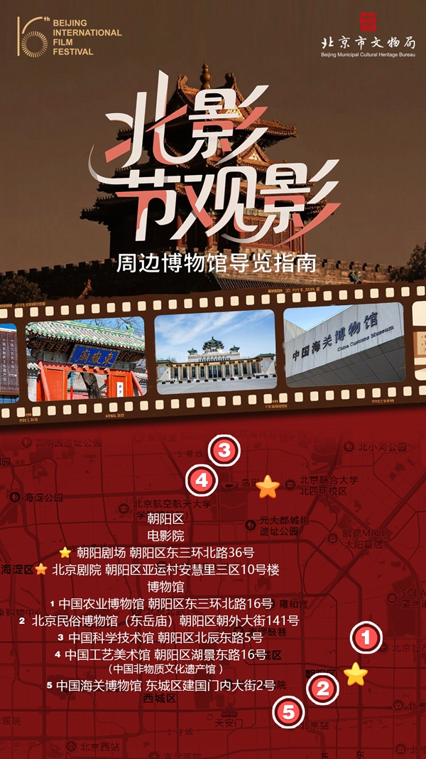 此外,北京市文物局推出【北影节观影周边博物馆导览指南】,邀请影迷朋友在走进影院观看佳片的同时,畅游影院周边博物馆,看电影、逛博物馆,体验双重文化魅力。