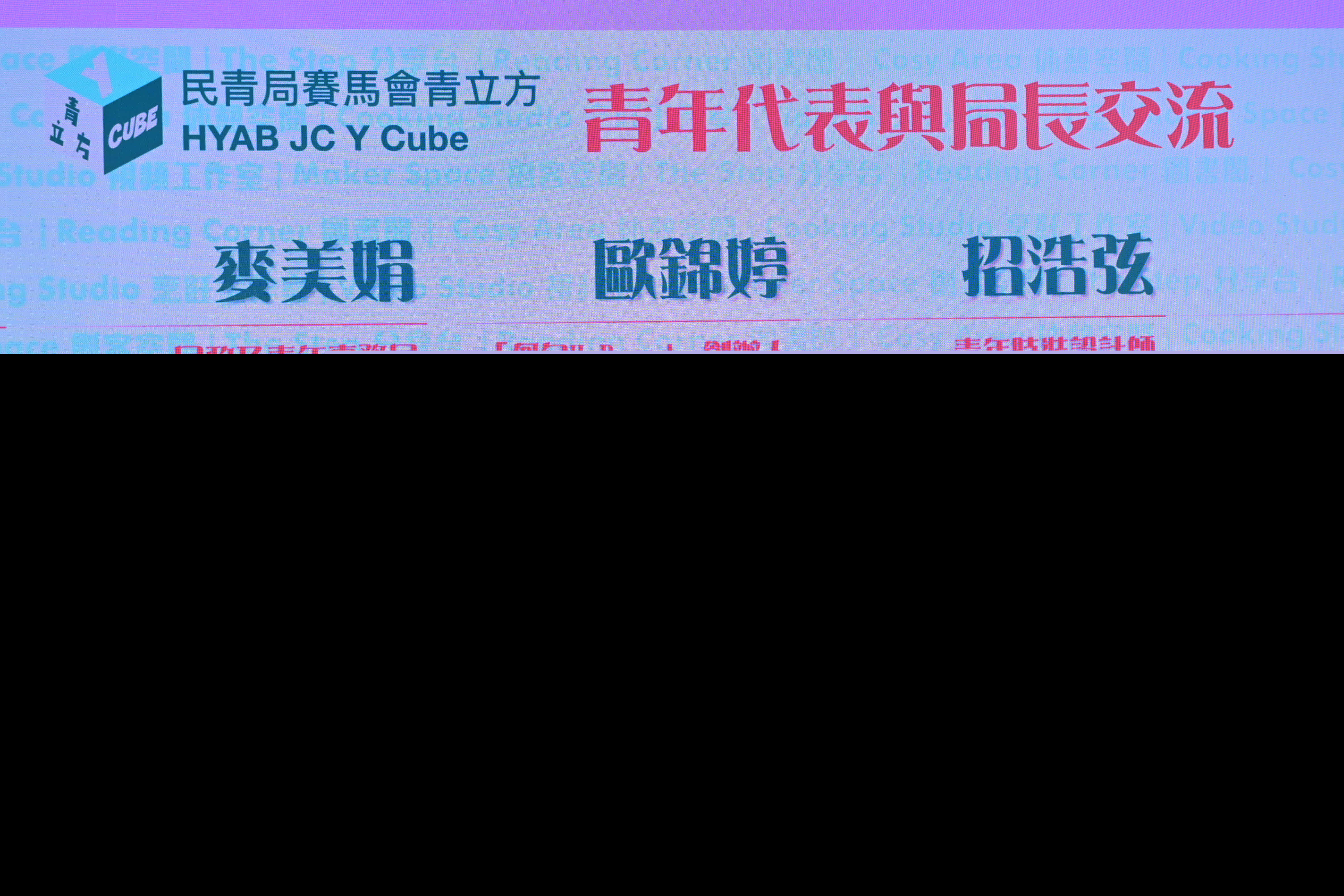 民青局賽馬會青立方設有多元化設施供青年使用,包括休憩空間、創客空間、烹飪工作室、圖書閣和視頻工作室等設施,讓青年探索個人興趣與職業發展方向、提升綜合能力和拓展視野。空間改造計劃的第二階段將於青年廣場一樓平台展開,預計今年年底前完成。