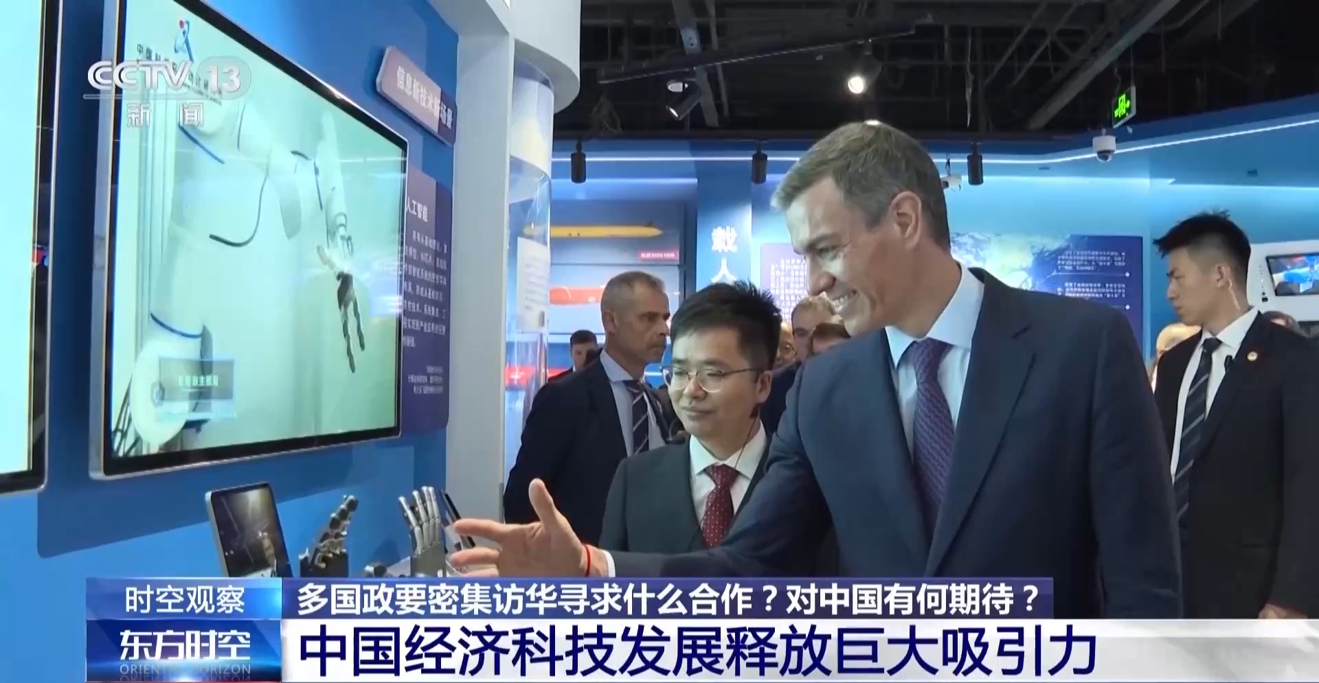 北京外国语大学欧盟与区域发展研究中心主任 崔洪建:我们看到他们在访华的行程中,都毫无例外地要安排到处走走看看,其中就要亲身体验中国科技发展的成就。现在中国已经进入了以科技总体创新来带动经济发展的一个新的阶段。近期中方无论是在人工智能,在数字,在其他的制造业方面等的一些成就,毫无疑问已经让中国成了世界科技创新的中心。