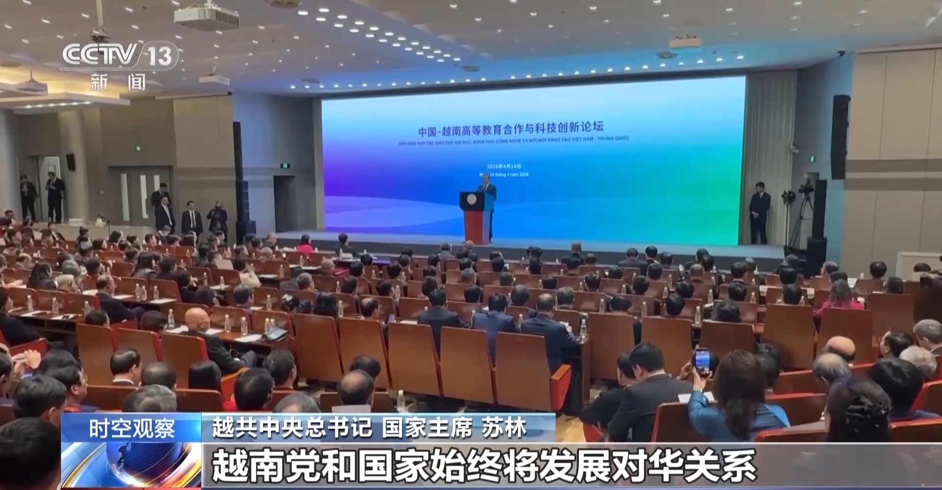 越共中央总书记 国家主席 苏林:越南和中国都进入了各自新的发展机遇期。中国刚刚通过了“十五五”规划,为中国新的发展阶段开启了新的篇章。越南也正在落实越共十四大的决议,为越南下一个阶段更高的发展目标努力奋斗。因此我认为我们两党两国都要加强合作,要加强战略对接,共同谋求发展。