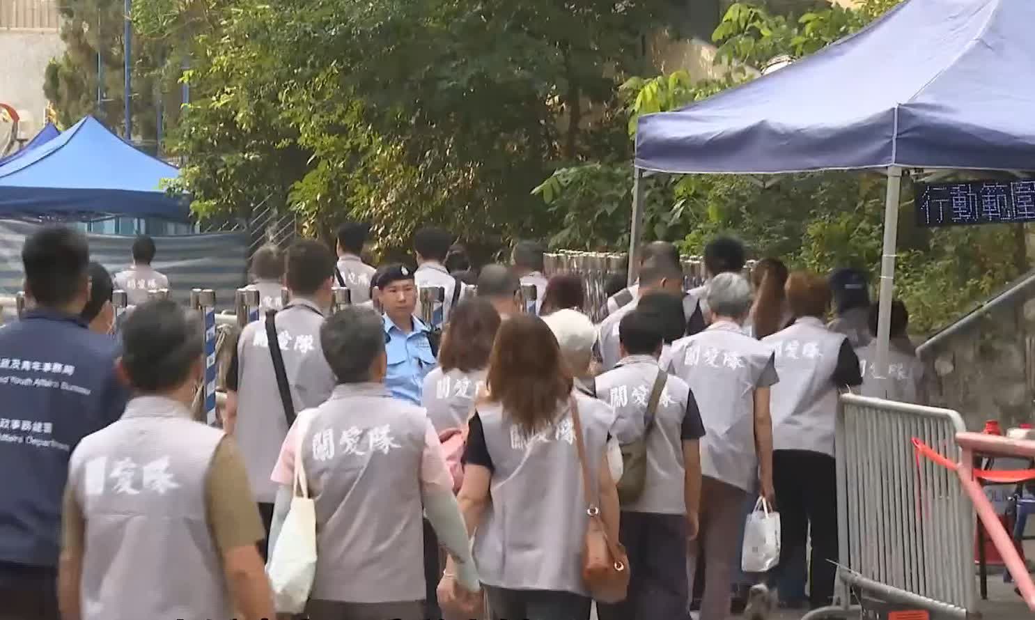 香港文匯報訊(記者 蕭景源)大埔宏福苑五級大火中7幢受災大樓的居民,今日(20日)開始分批上樓執拾,由今日至本周三(22日)先讓宏新閣居民返回單位,上樓居民需要先在廣福社區會堂作登記手續。早上約8時,政務司副司長卓永興、民政及青年事務局局長麥美娟、民政事務總署署長杜潔麗及房屋局局長何永賢到場視察情况,警方在宏福苑的出入口架設封鎖線及鐵閘,除政府人員在場候命外,多支關愛隊到場支援居民。