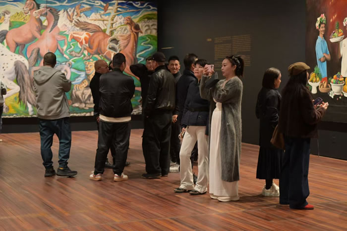 正墙上的《曼谷的夏天》,则是关注故事如何在巨幅绘画中生成。画中的主人公郑林,有着各种传奇性的故事,于是,秦琦决定在画中组织一场具有东南亚风情的VIP晚宴。觥筹交错间,一幅艺术与财富交织的长卷徐徐展开。此情此景,总会令人想起达芬奇笔下的《最后的晚餐》。