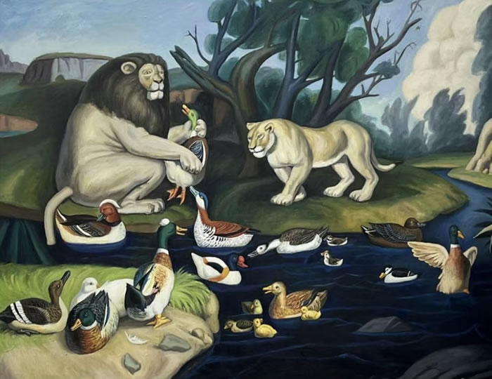 狐狸代表狡猾、猴子代表聪明、鸳鸯代表爱情、狮子代表力量、蚂蚁象征 着劳动。如果不是秦琦的这些作品,我们似乎都忘了在古老的童话、寓言、自然的纪录片中常常借助动物讲述智慧、生命和爱的力量。
