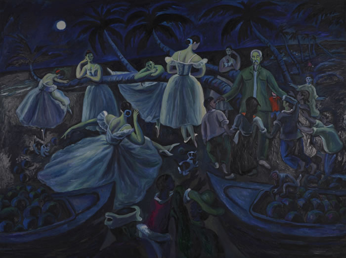 秦琦 ,夜来香 ,300x800cm(四联),布面油画 ,2018