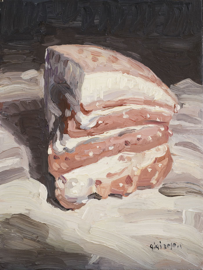 艺术史从来不是秦琦创作的灵感与起源,那块象征着“肉身经验”的肉块,标明了画家的立场:他总是在不入画 的日常生活中寻找灵感,将浪漫主义笔下的牛肉,替换成更俗气的猪肉,以远离精英化的艺术史。在这个意义上,“画家的新小说”点明了秦琦日后创作的几个关键性特征:对抗精英化的单一趣味 ,多样风格和故事的接踵而至,异域风情和自由自在的开始…….