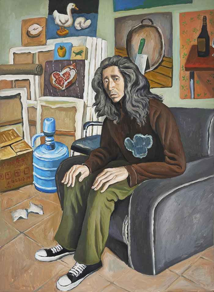 从画家青年时期参加的名动大江南北的“星星画会”,到其远赴美国后又潇洒回国——当然,酷爱写实主义的秦琦,从不会如实地记述,耳闻的故事总会加入主观的发挥与想象。于是,这个故事便迎来了一个半超现实、半穿越剧的框架。故事发展到跨国叙事,彼时的画家刚从美国归来,他像是一位先知一样,向一位诗人讲述美国和西方的故事。时间又到了中年,这时的画家过上了更为精英的生活,他的身上有着华尔街和嬉皮士的奇妙结合。