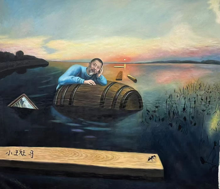 在这里,画面中的人物形象源于艺术家生活中真实的朋友们:有画廊主,一起踢球、喝酒的哥们儿,画家同行,老乡或者是圈内知名的老先生......秦琦笔下的人物,光鲜与暗淡总是人生的两面,有得意的人,就有失意的人,有名人,也有世俗意义上的“是个人物”的能人、硬人与怪人,他们以轻松、幽默、荒唐、尖刻的方式、大众化和通俗化的绘画语言,在秦琦的身边,在画中,以恍然大悟后的会心一笑一一登场。