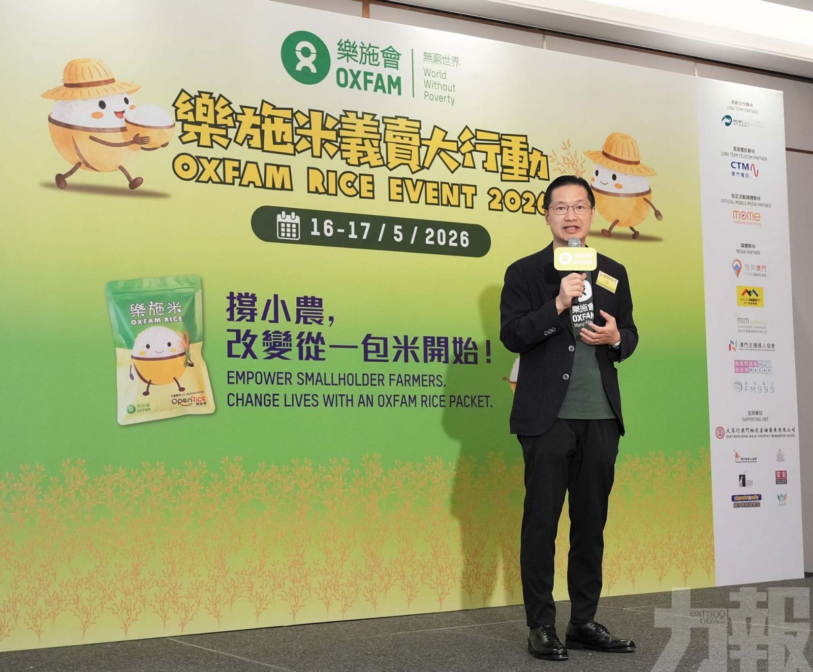 樂施會年度旗艦籌款活動「樂施米義賣大行 動2026」將 於5月16日 至17日(星 期六、日)一連兩天於澳門多個地點舉行。今年是本活動在澳門舉辦的第十五周年,今年以「撐小農,改變從一包米開始!」為主題,透過義賣樂施米及多款精美禮品籌募款項,支援全球受氣候變化影響的小農及貧窮社群,協助他們改善生計、提升抗逆力,應對日益嚴峻的氣候危機。