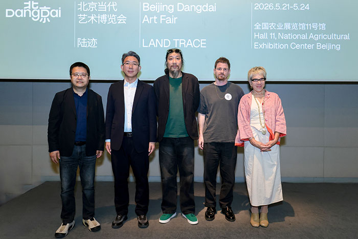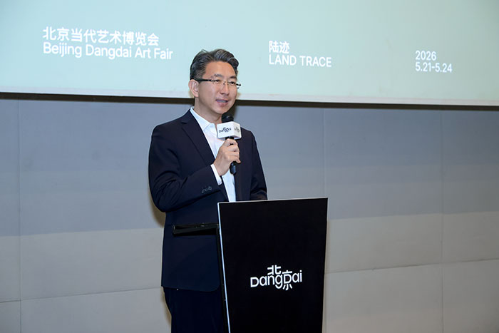 2026年4月22日,北京当代艺博会2026新闻发布会在798尤伦斯当代艺术中心举行。本届艺博会以“陆迹”为主题,将于5月21日至24日在全国农业展览馆11号馆举办。北京国际设计周有限公司董事长王昱东,北京七九八文化科技有限公司党委书记、董事长郭华平,麦勒画廊合伙人小麦(Rene Meile),北京塞万提斯学院院长易玛(Inma Gonzalez Puy)等嘉宾出席发布会并致辞。