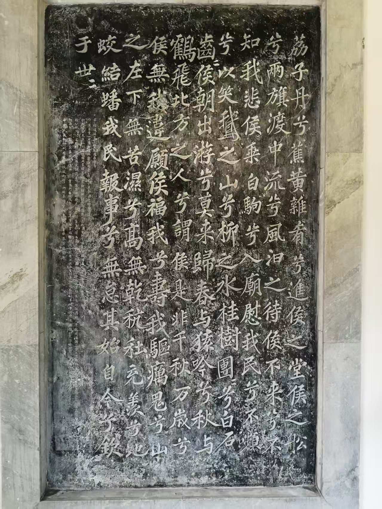 目光停驻廊壁嵌着的镇祠之宝——荔子碑。碑高逾丈,历经风霜,满身沧桑,虽经后世拼接修复,字迹依旧铁画银钩、苍劲有力,将世人敬仰与追思镌刻千年。伫立碑前,恍闻历史回响。此碑因碑文首句“荔子丹兮蕉黄”得名,集韩愈之文、苏轼之书、柳宗元之德政事迹于一体,三位唐宋大家才情风骨相融,成就“三绝碑”美誉;加之精湛阴刻技艺,久观宛若阳刻,堪称艺林一绝。碑文虽仅十句,却字字千钧,绘尽柳州百姓祭祀柳宗元之盛景,字里行间,满是民众对这位刺史的感念与追怀。尽管时光已逾千年,那份人心所向,依旧扑面而来。