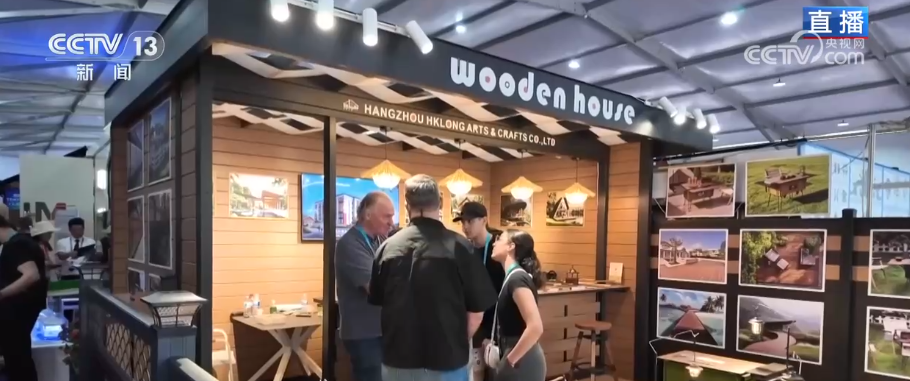 其实,记者身处的这座氛围感满满的庭院,只用了一天的时间拼搭而成,像搭积木一样简单。凭借低成本、易搭建的优势,它成为展会现场的热门焦点。庭院材料采用高分子玻纤合成材料,韧性十足、不易断裂,具备不腐烂、不开裂、绝缘防火等特性,且可降解,契合绿色低碳理念。产品可用于户外地板、围墙、墙面、屋顶等多种场景。您猜这样一间庭院造价大概是多少?参展商介绍,在5万元人民币左右。开展以来,已接待欧美、中东、日韩、印度、俄罗斯等多国客商,采购意向强烈,甚至有客商直接带走样品。户外造景产品亮相 集成房屋模块化受青睐户外造景方面,除了可移动庭院,还有集成房屋、户外喷泉等创新产品的集中展示。其中,有一款内外全铝制集成房屋备受关注,产品防火保温、防潮隔音、健康环保,兼具抗腐蚀与抗风能力,部分高端产品采用环保涂层及全铝家具。模块化发运,将一个个完整的房子拆成模块发到海外再进行组装。全铝房屋回收利用率高,循环再生优势显著,能大幅减少环境污染。客商主要集中在北美、澳洲、新西兰等地,多用于自家后院、露营或海边。整个集成房屋专区不仅透露出中国制造在外贸领域的蓬勃活力,更彰显出中国企业正以绿色创新为核心引擎,驱动行业向更低碳、更环保的方向发展,引领新一轮绿色建造浪潮。“品质家居”聚集人气 全球商机纷至沓来