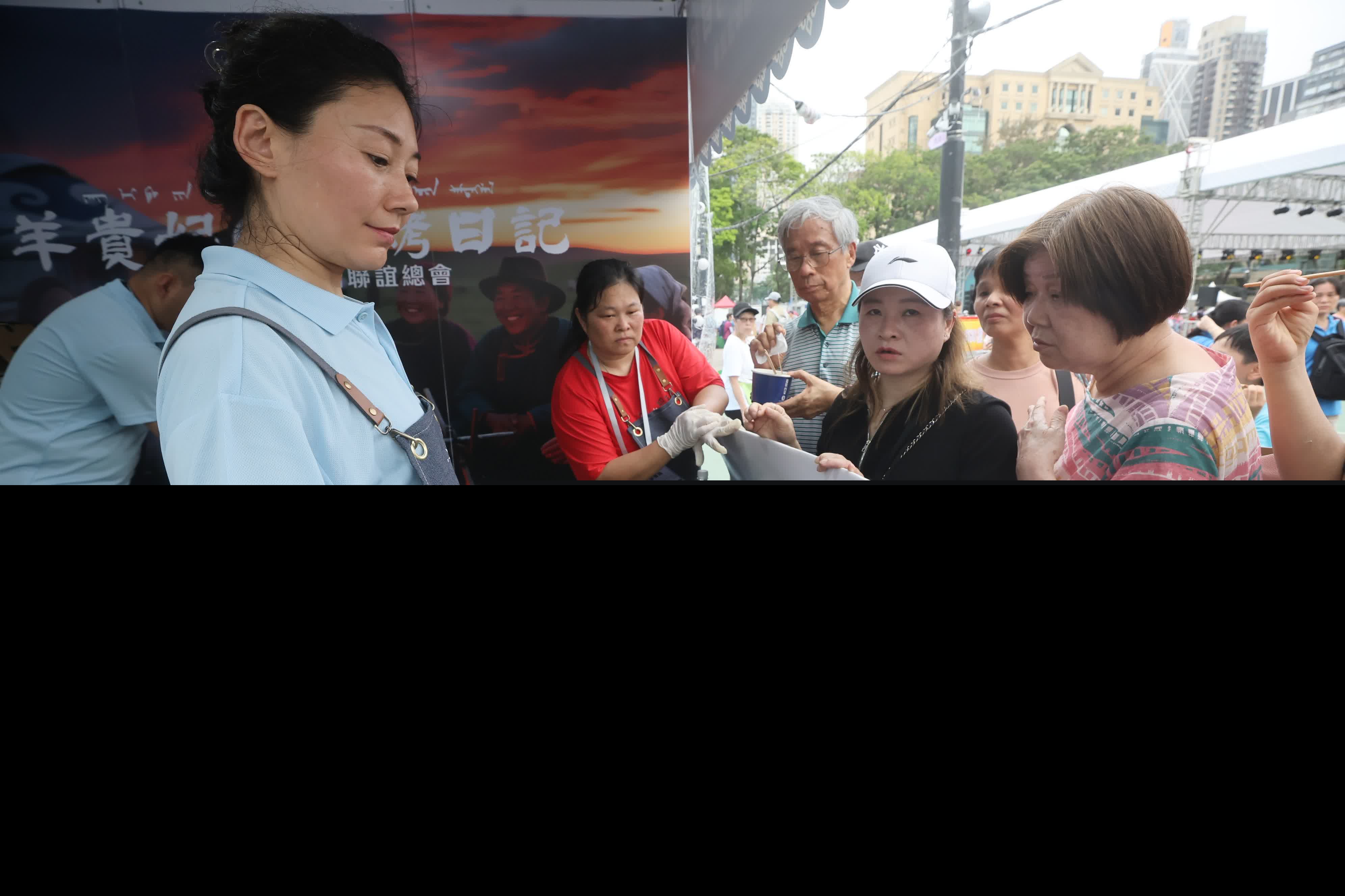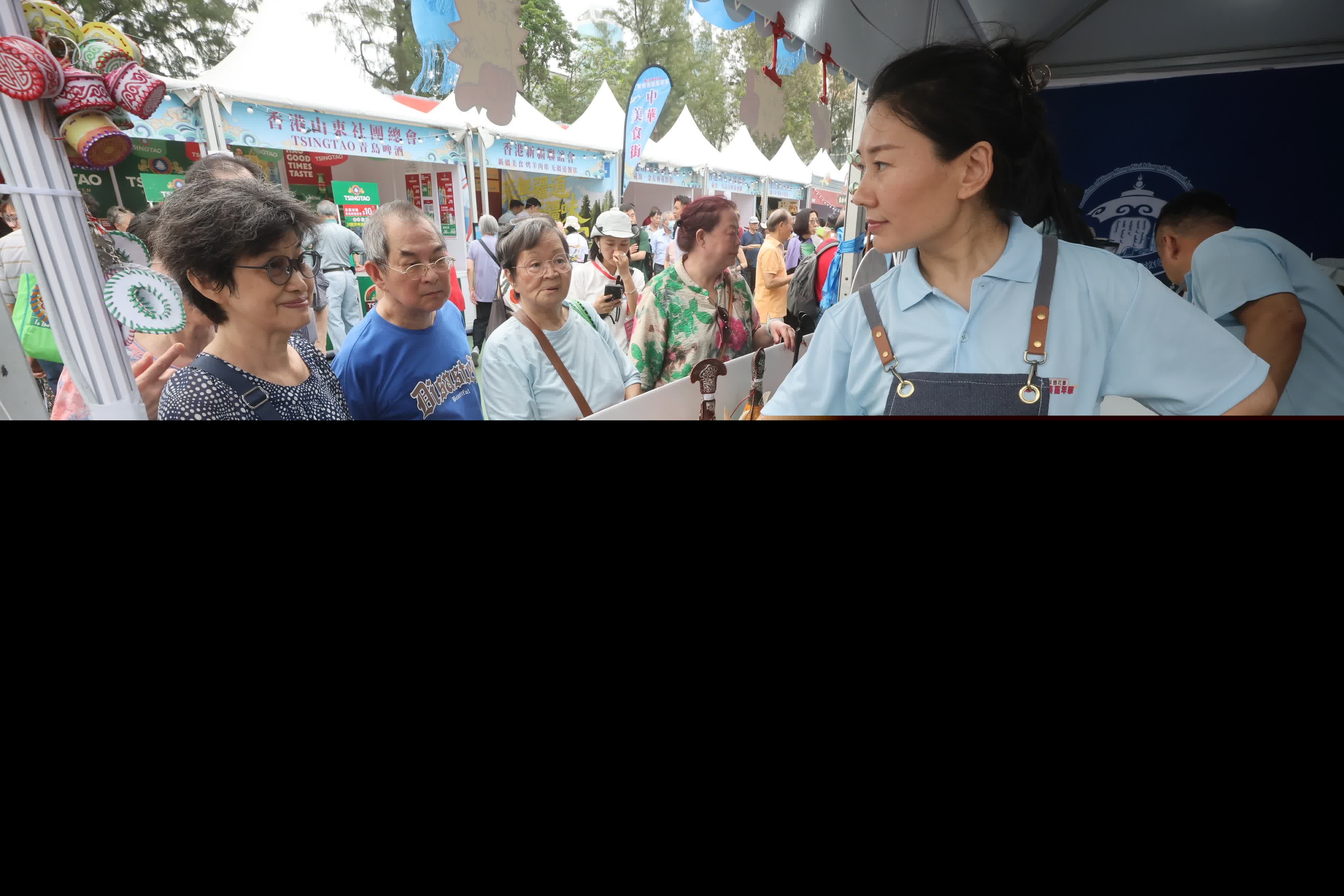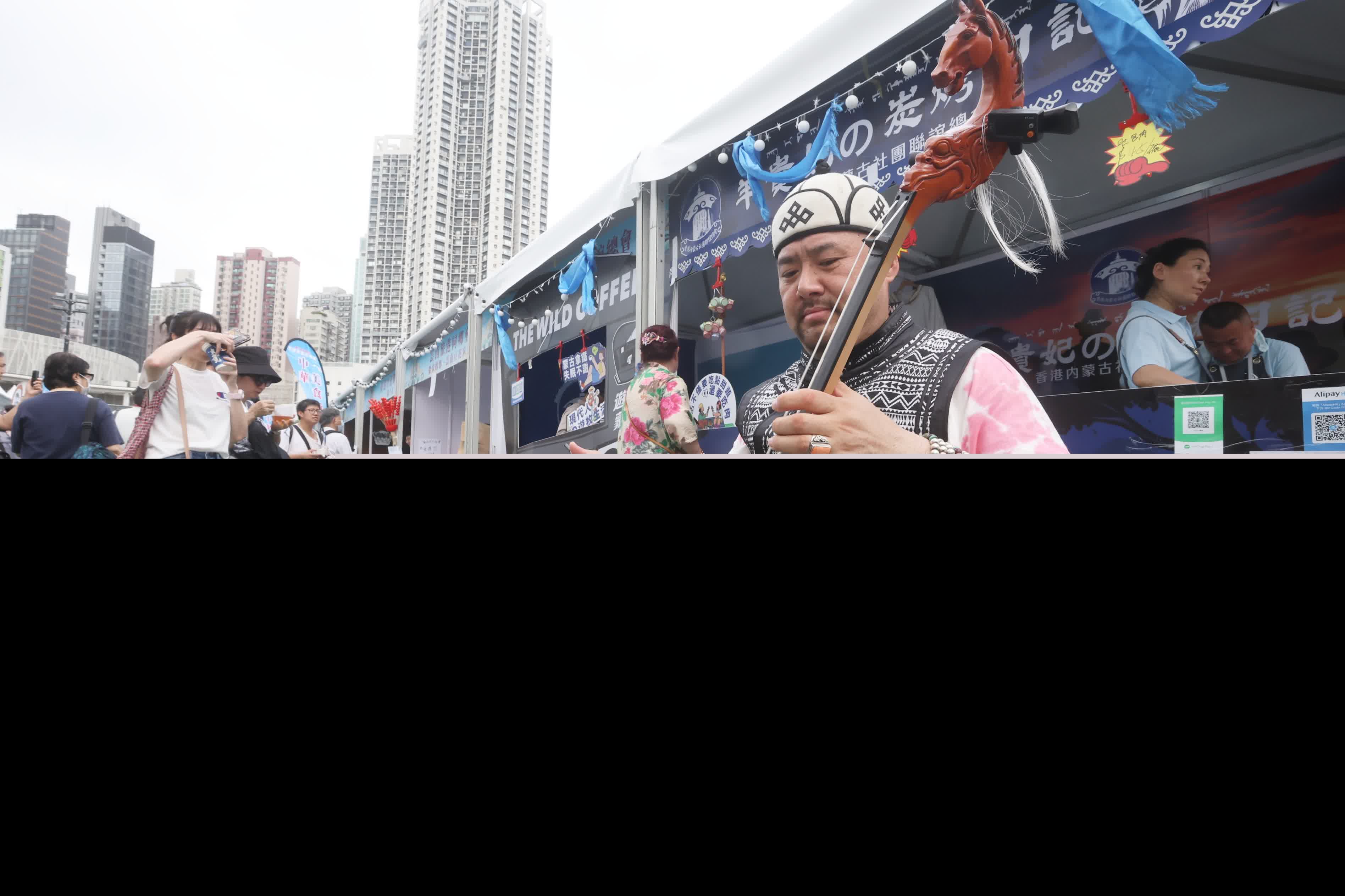 昨日炎熱的天氣下,在攤位準備美食的工作人員依然身着內蒙特色服飾,汗水雖布滿他們的額頭,但他們的熱情卻依舊不減,熱情地招呼着每一位前來的顧客。攤位旁還有蒙古族歌手現場獻唱,彈奏着內蒙傳統的馬頭琴樂器,其嘹亮的歌聲與美食香氣交織,讓人仿若置身遼闊的內蒙古草原。包豔麗直言,「儘管內蒙和香港距離遙遠,但我們希望通過現場準備的美食、音樂和民族服飾,讓市民感受到濃郁的內蒙風情。」