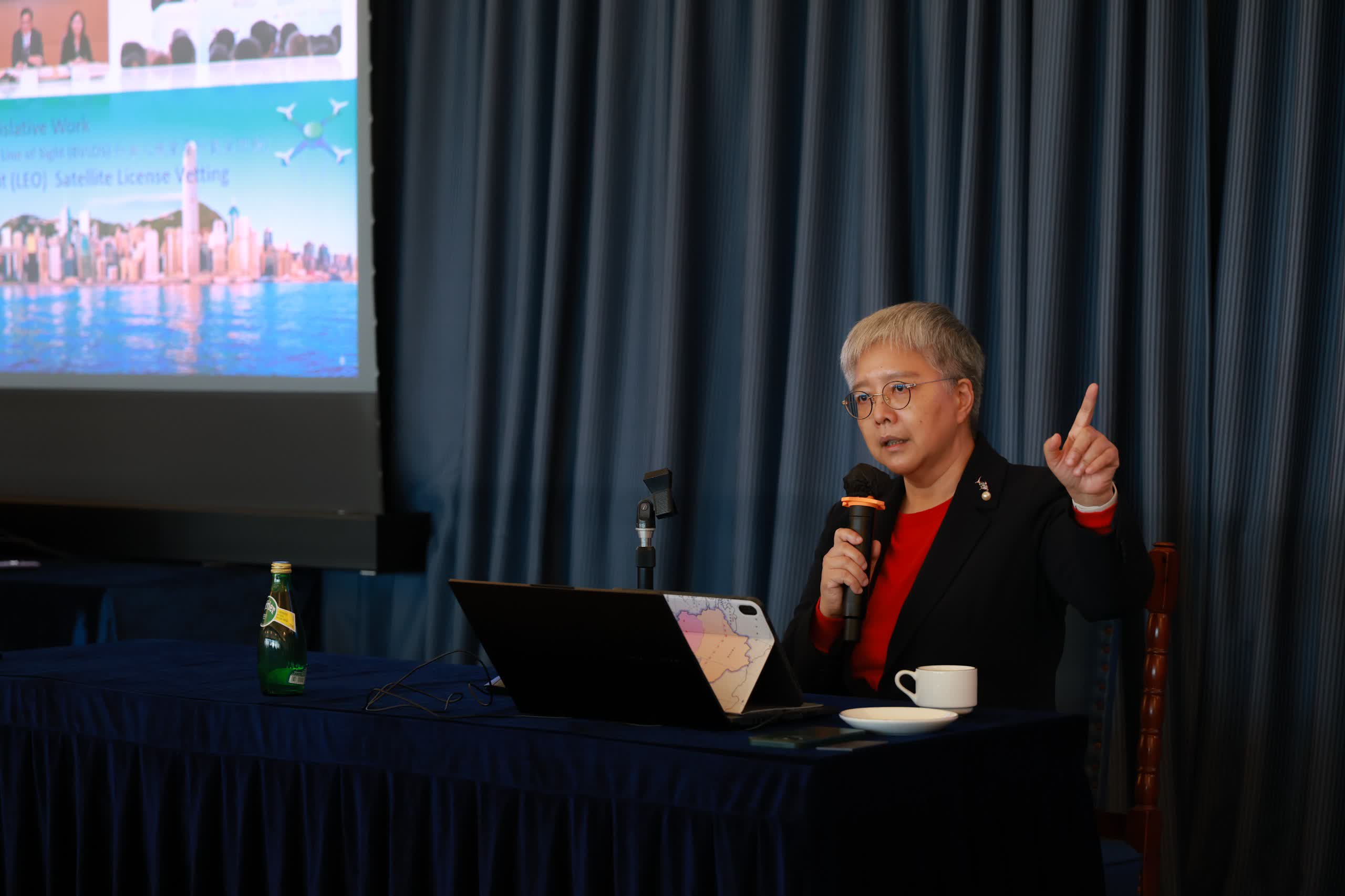 擔任小組主席的警務處助理處長(資訊系統部)關翠貞亦分享了警隊現行於低空技術實務應用的相關進展,特別是在救援行動、城市巡查與數據監測上的試點成效,並即場介紹的HKSOS平台及相關的Signal Radar專利技術 (在沒有流動通訊網絡的情況下偵測HKSOS訊號),以及飛行數據分析模組,均已於特定任務場景進行實地部署,展現低空技術應用與前線在地人員執勤的無縫配合。