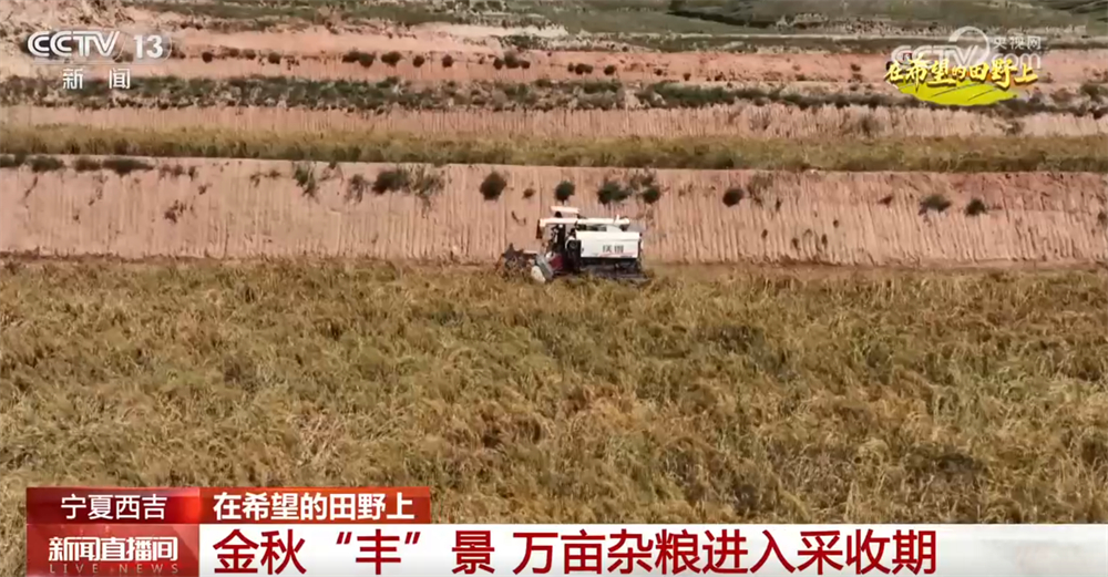 在宁夏西吉县沙沟乡,糜子、谷子、荞麦等杂粮作物陆续进入成熟期,收割机与忙碌的农户交织成一幅丰收的生动画卷。