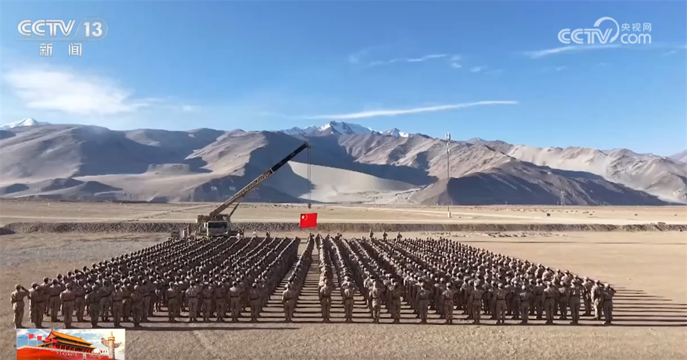 央视网消息:10月1日,迎着清晨第一缕阳光,官兵们在祖国各地座座军营、边防哨所、前沿战位升起鲜艳的五星红旗,共庆中华人民共和国华诞。