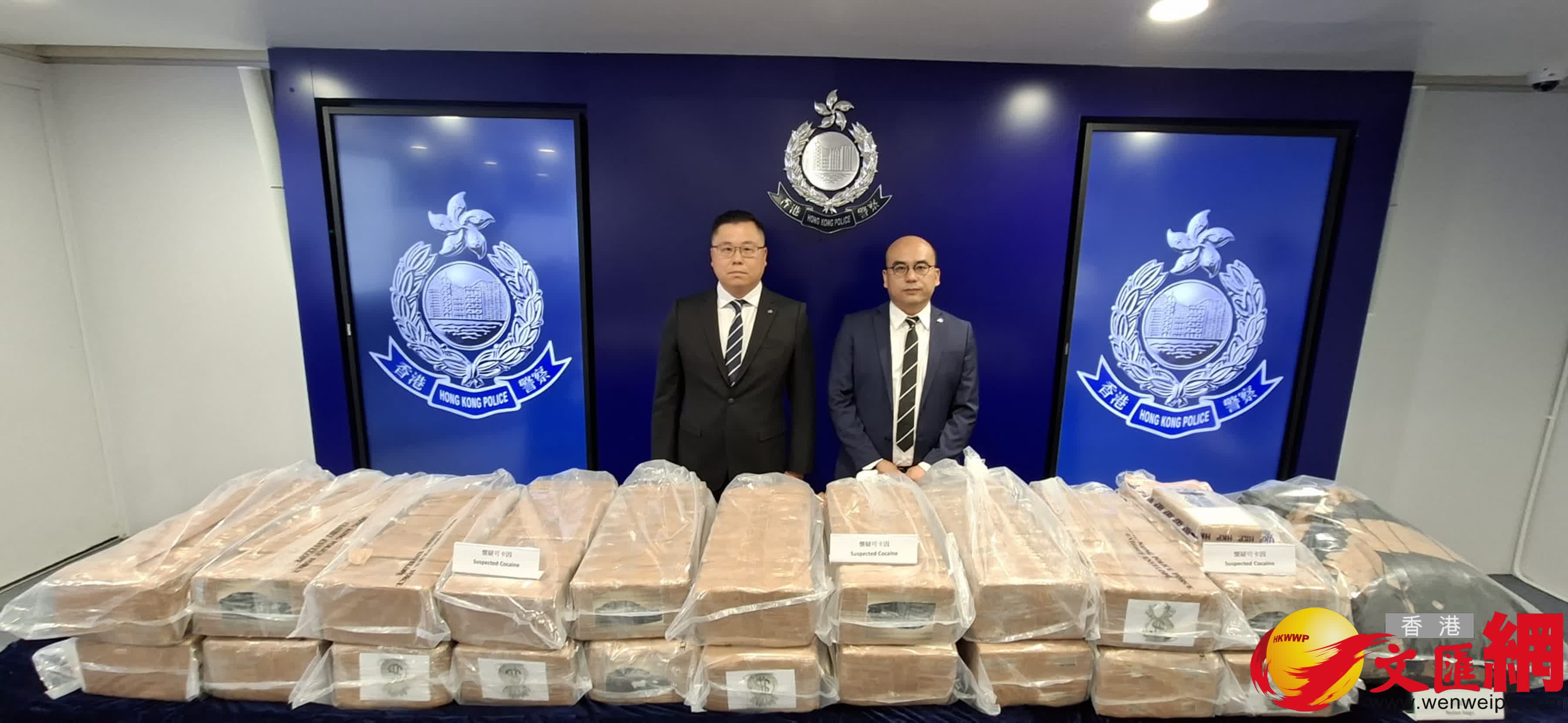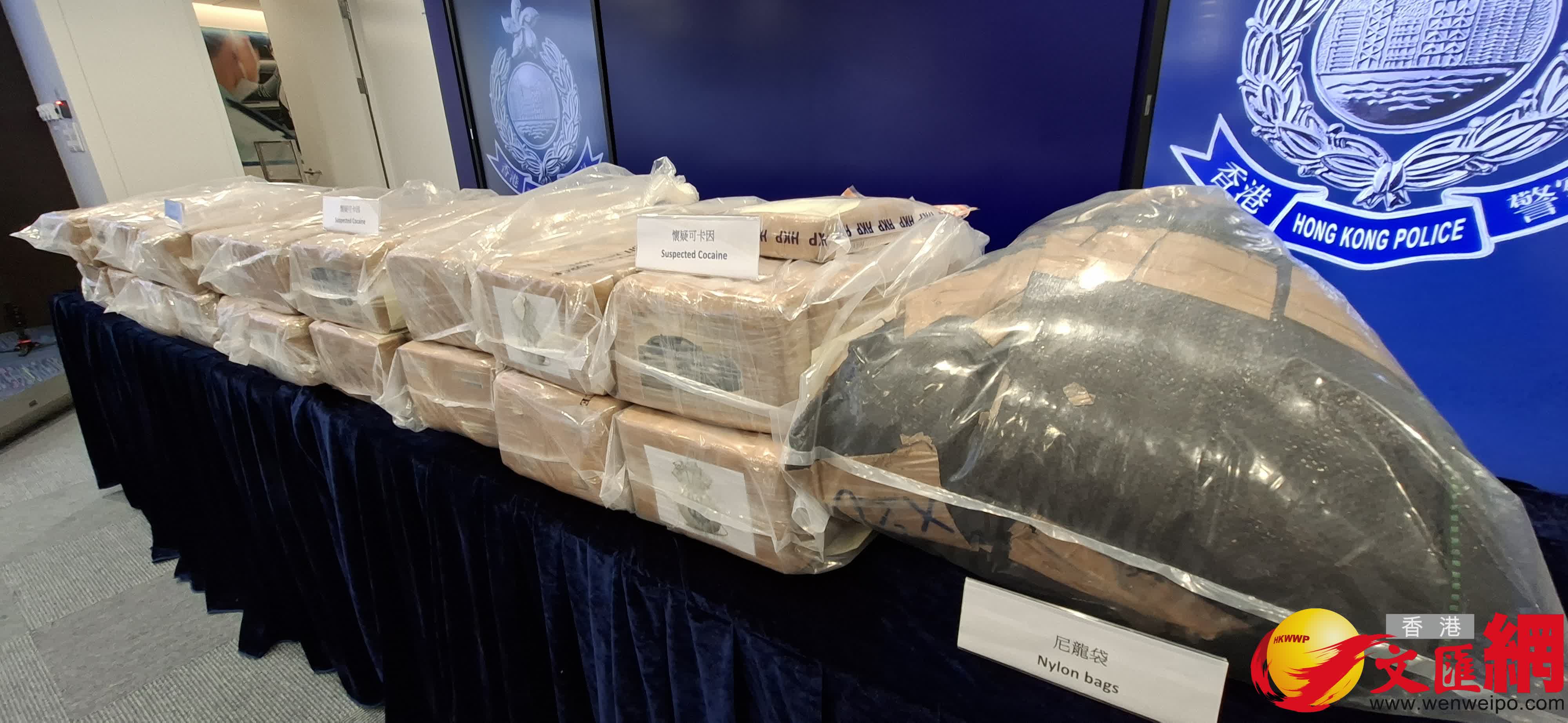 警方展示檢獲的億元可卡因毒品。香港文匯報記者鄧偉明攝